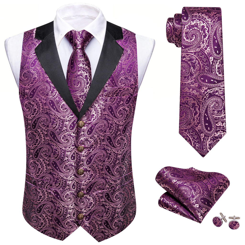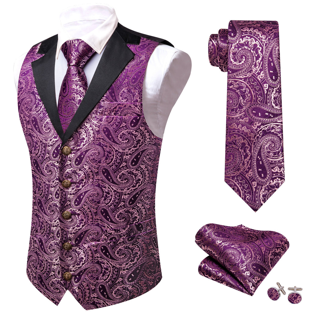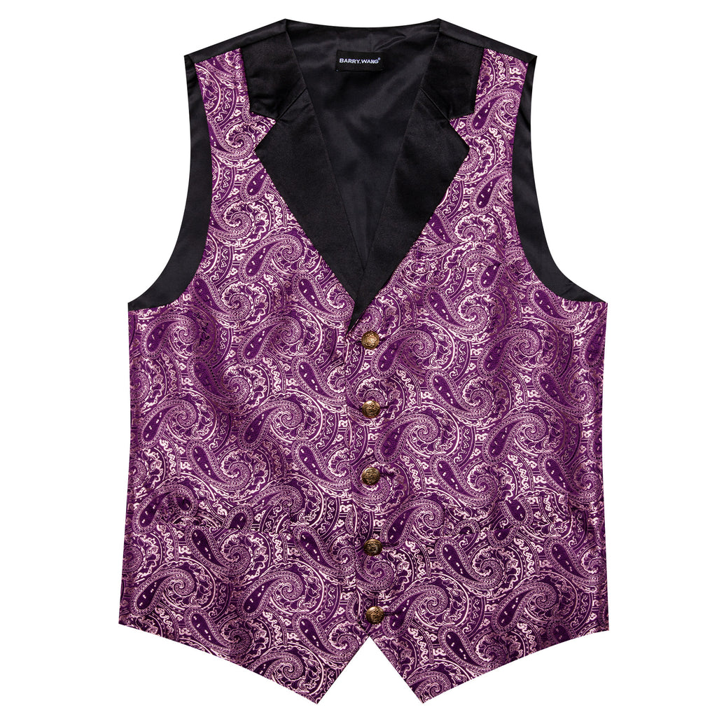 Barry. Wang Mens Paisley Suit Collar Vest Twilight Lavender Waistcoat Necktie Hanky Cufflinks Set