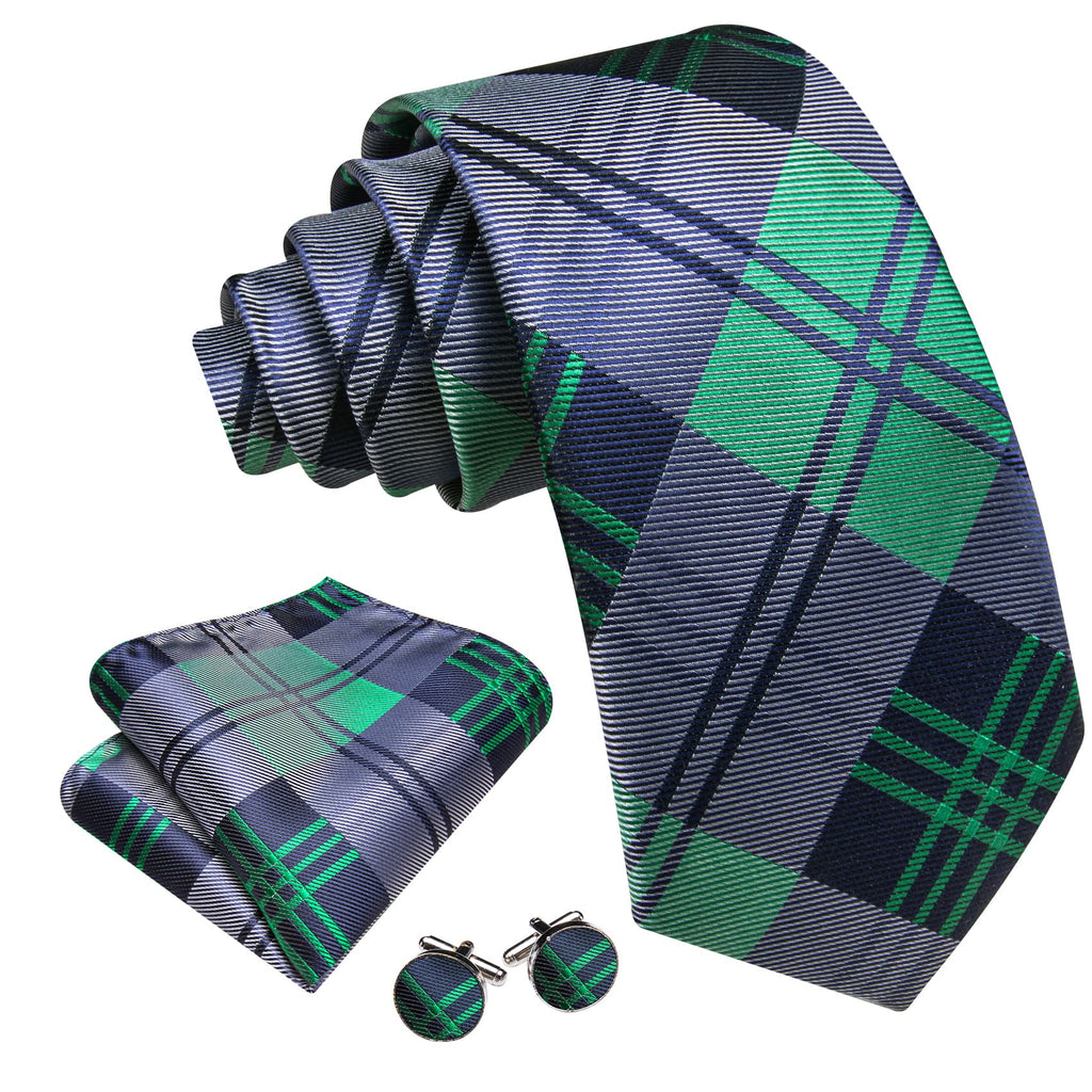 Barry. Wang Mens Plaid Tie Mint Green Dark Grey Necktie Set