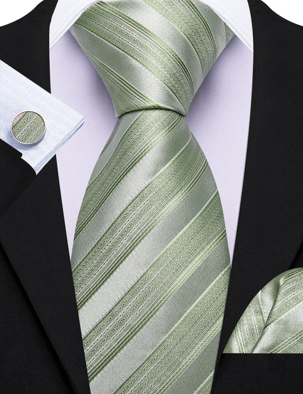 Barry. Wang Mens Sage Green Necktie Striped Tie for Men Formal Suit Tie Set