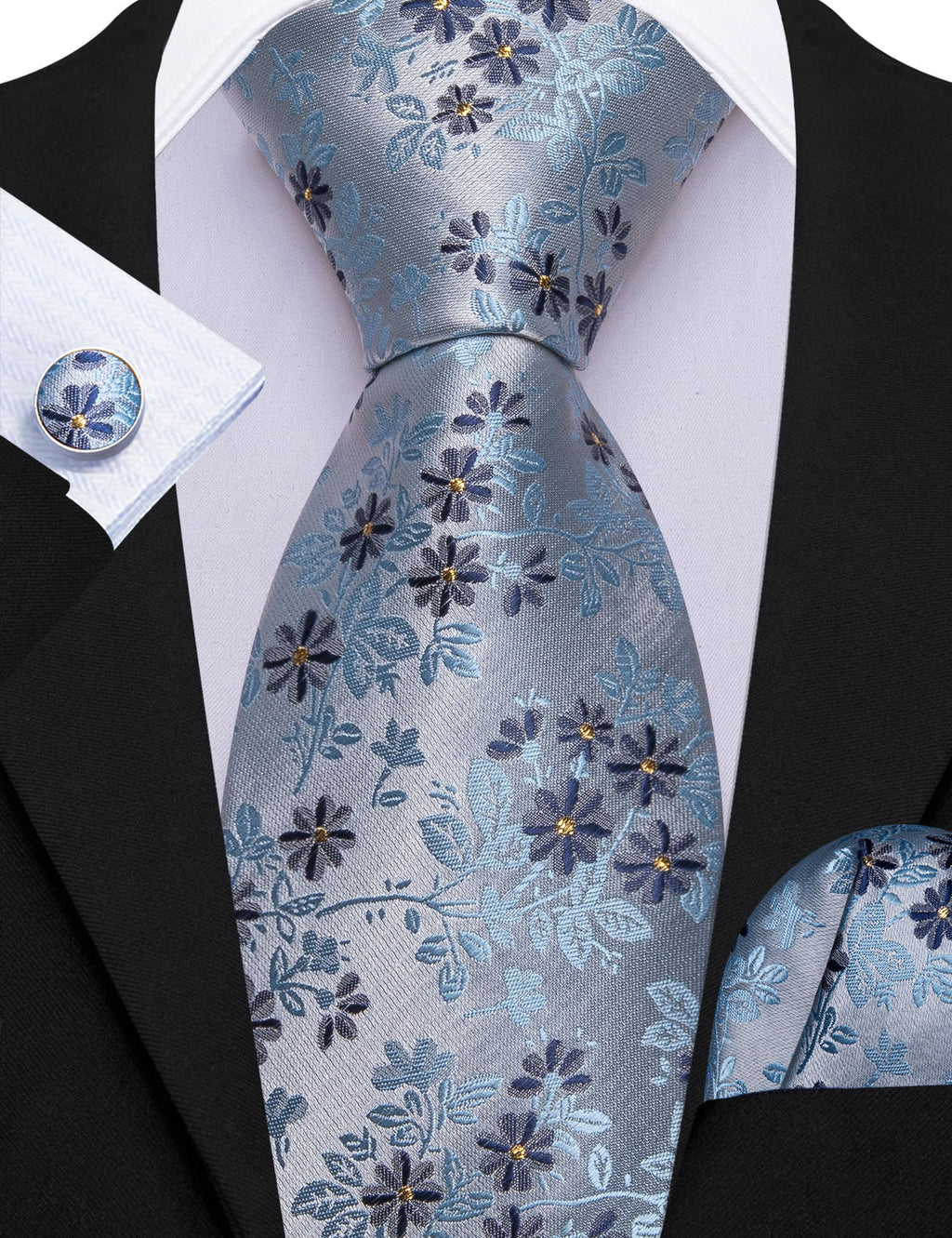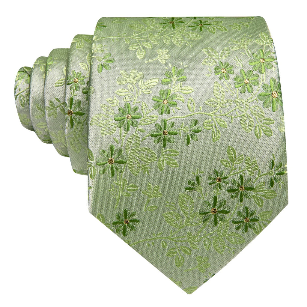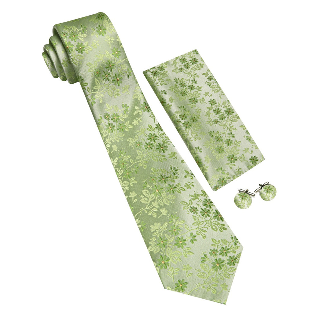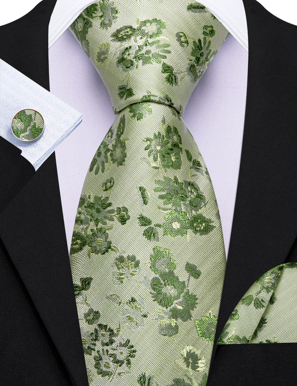 Barry. Wang Men's Sage Green Tie Floral Tie Pocket Square Cufflinks Set