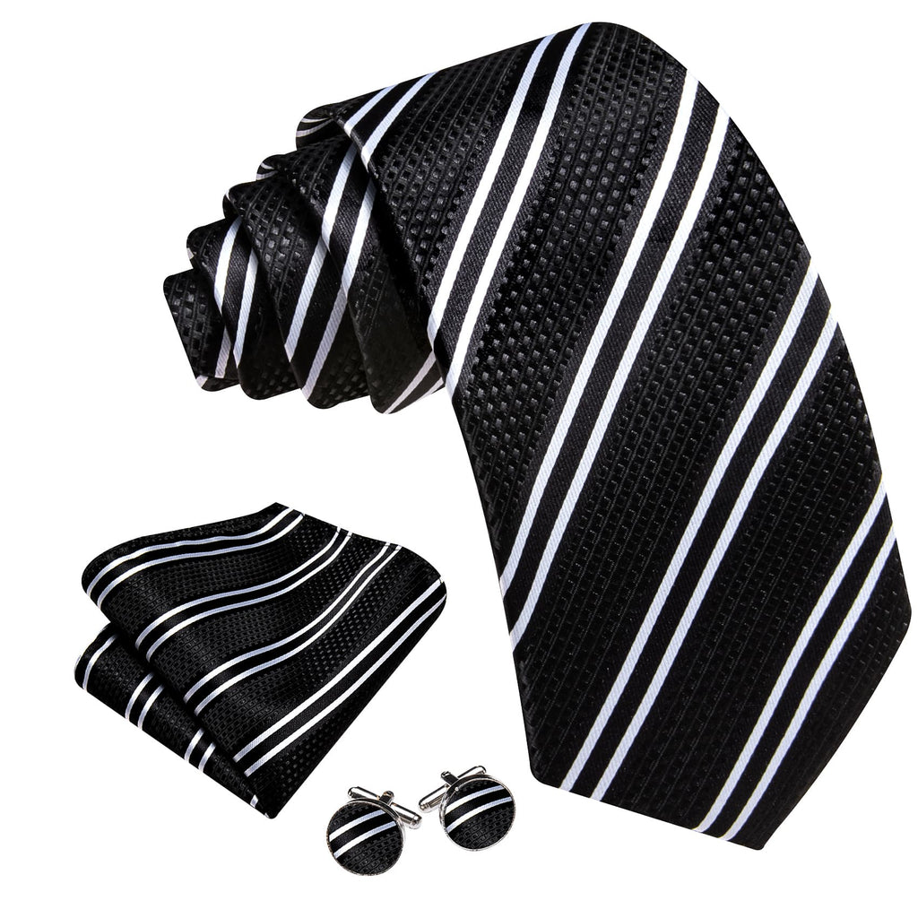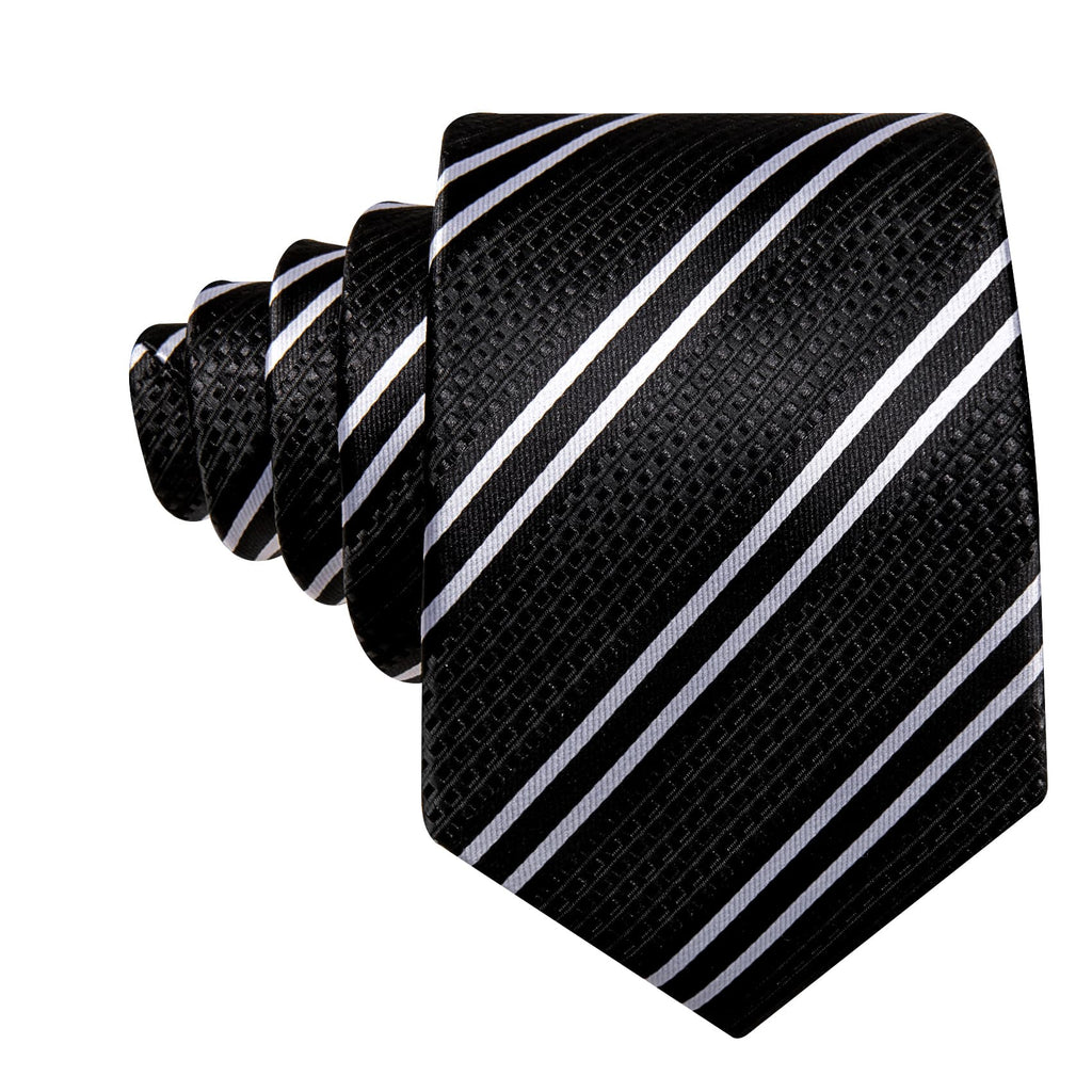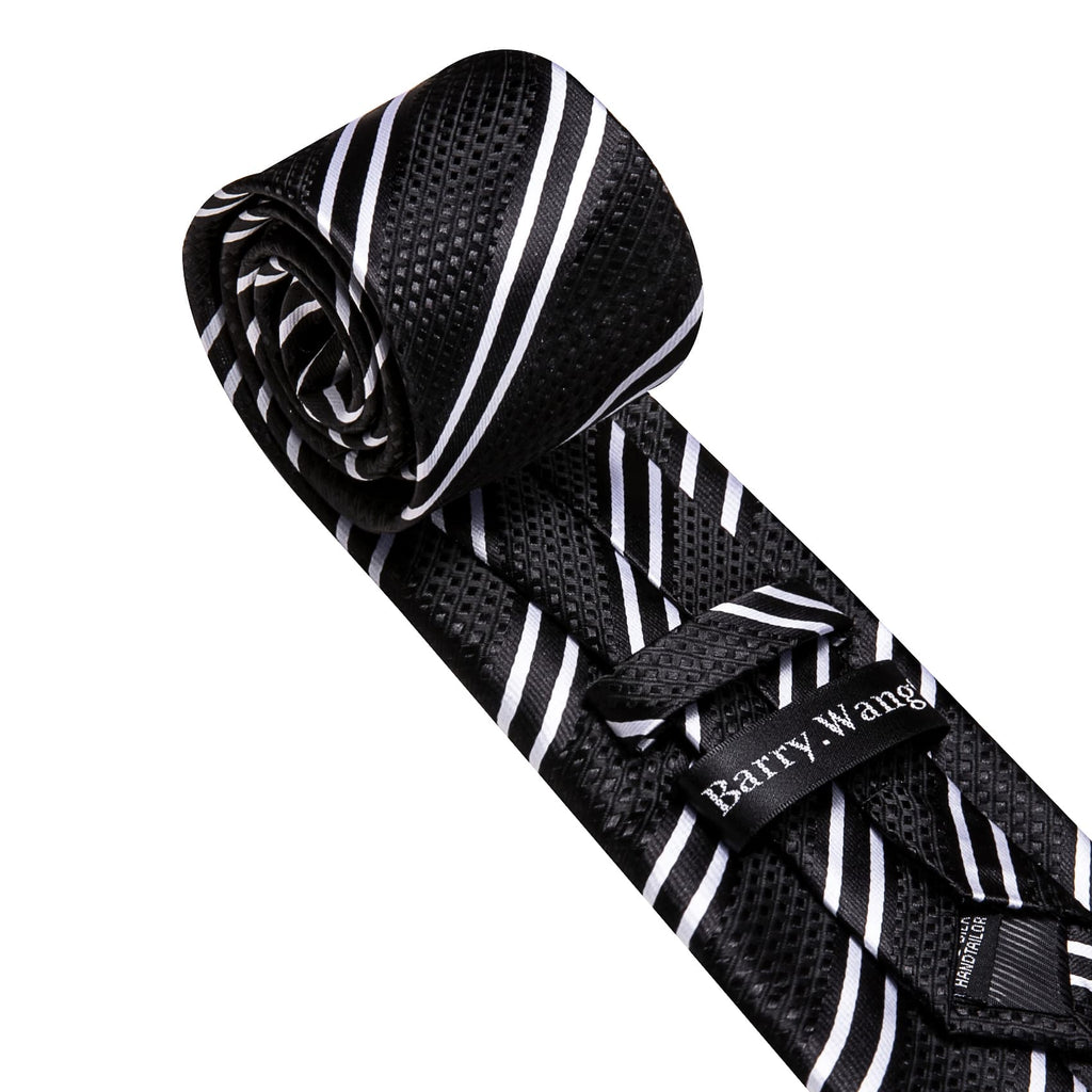 Barry. Wang Mens Striped Tie Black Necktie Set with White Stripes