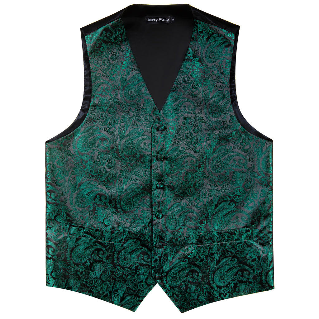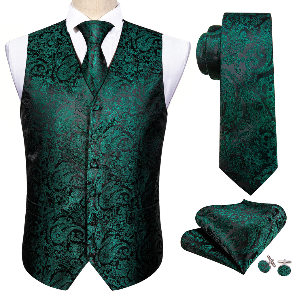Barry. Wang Hunter Green suit Vest Paisley Jacquard Formal Vest Tie Hanky Cufflinks Set