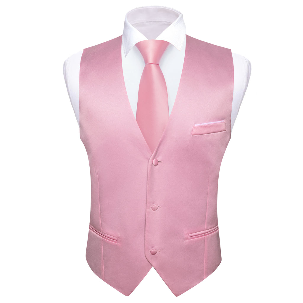 Barry. Wang Mens Pink Casual Vest V-neck Solid Leisure Suit Waistcoat