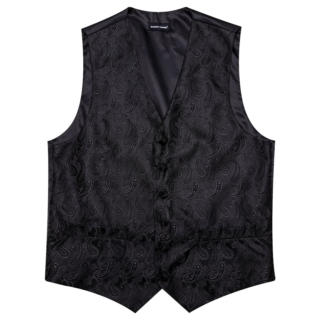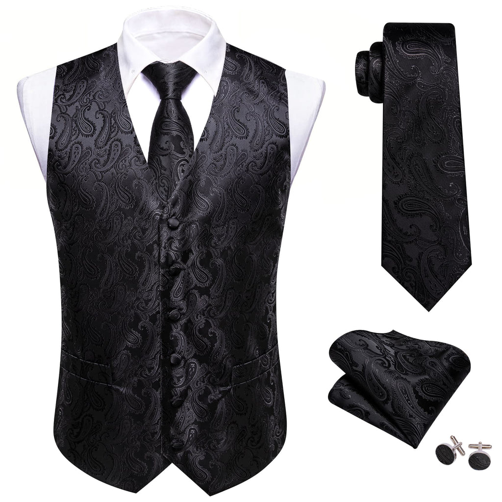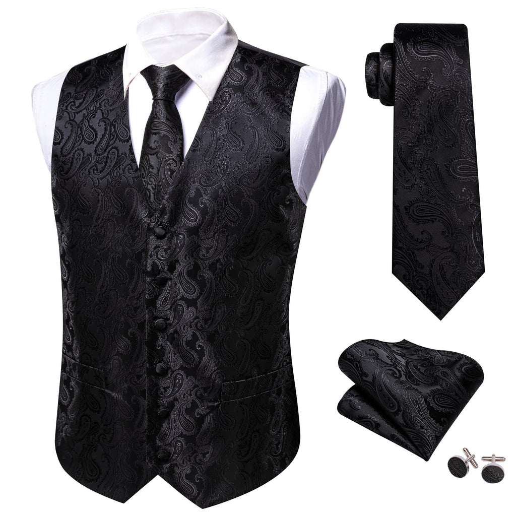 Barry. Wang Paisely Retro Cowboy Vest for Men Black Casual Vest Tie Hanky Cufflinks Set