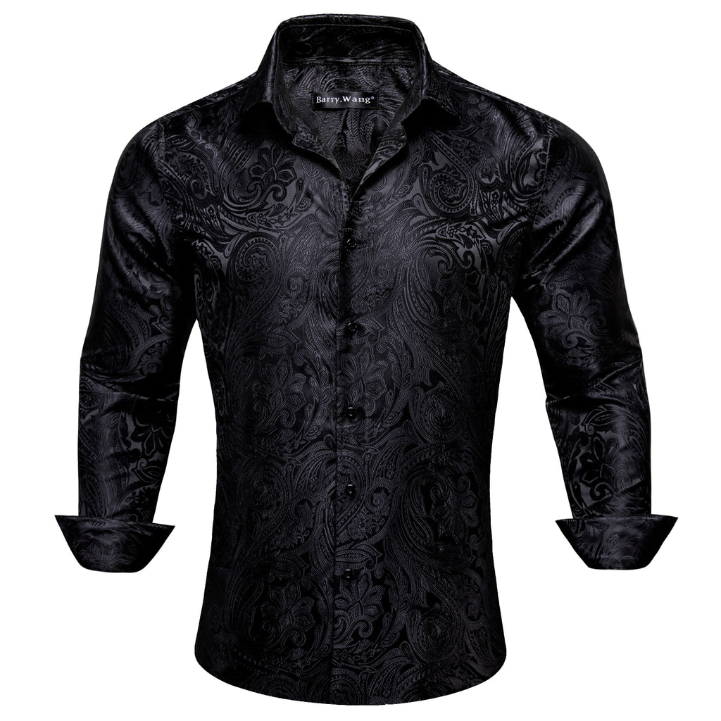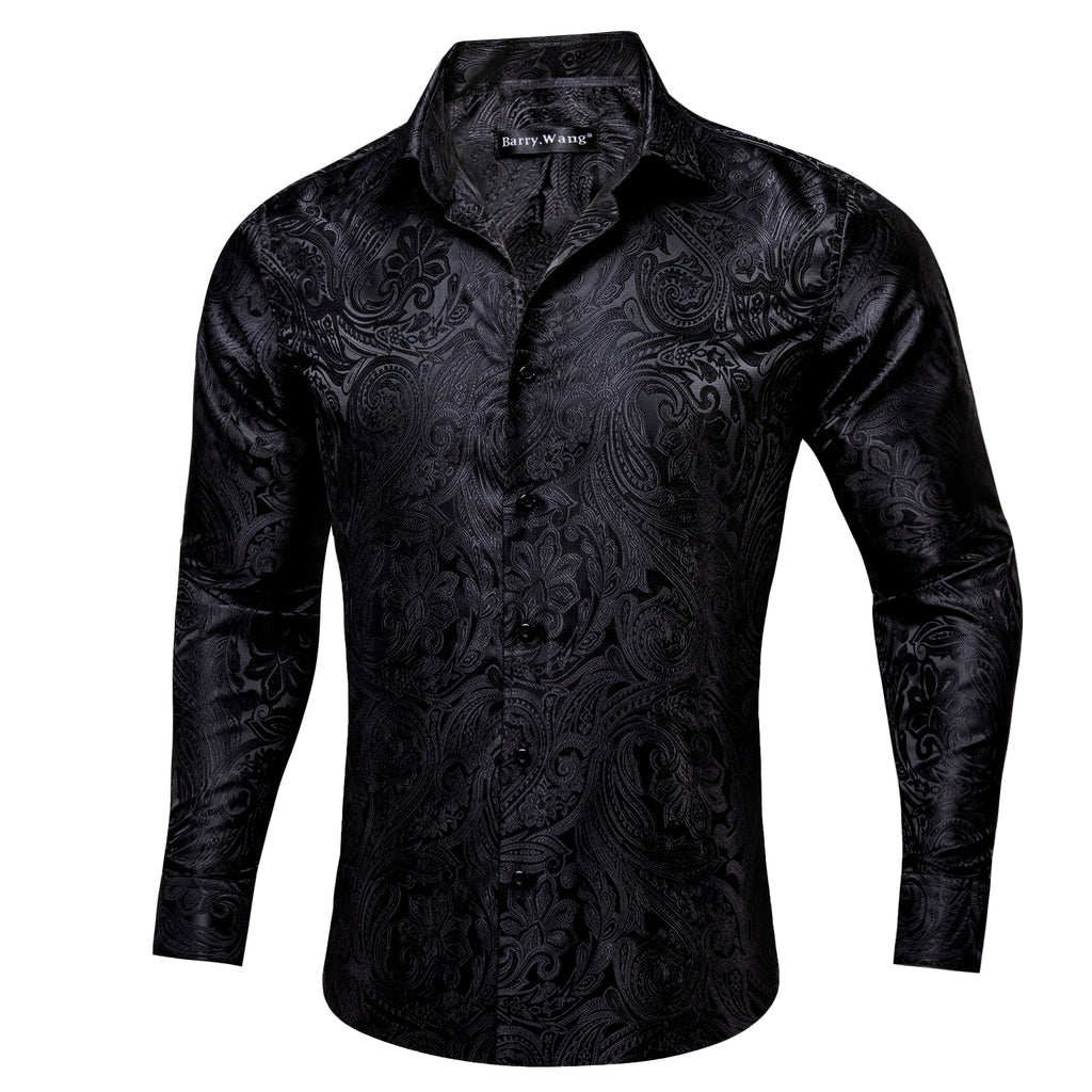 Barry. Wang Mens Western Shirt Casual Black Paisley Jacquard Long Sleeve Button Down Shirt