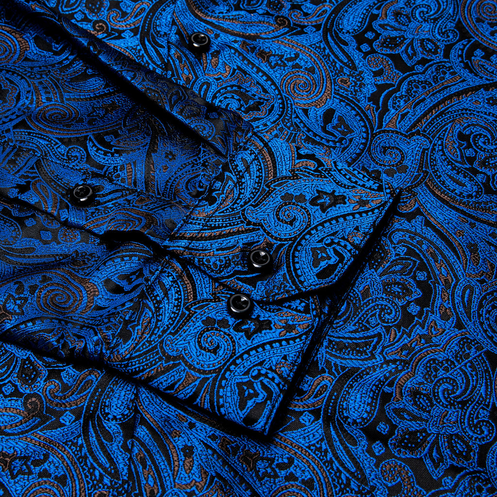 Barry. Wang Navy Casual Shirt Mens Paisley Long Sleeve Button Down Shirt