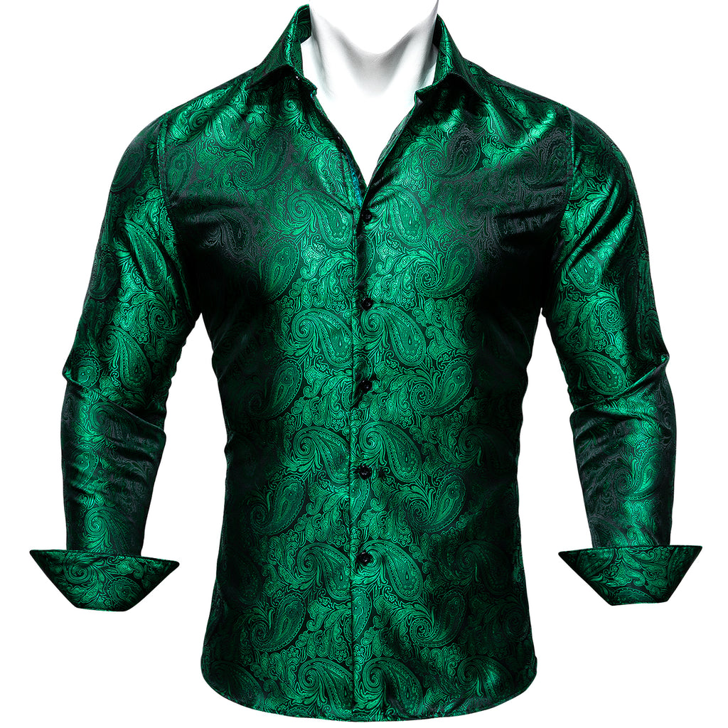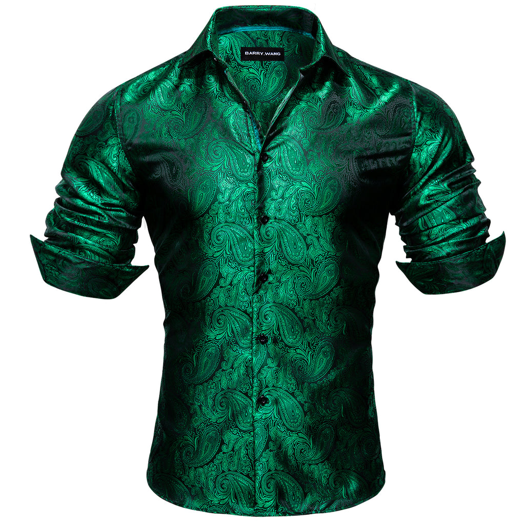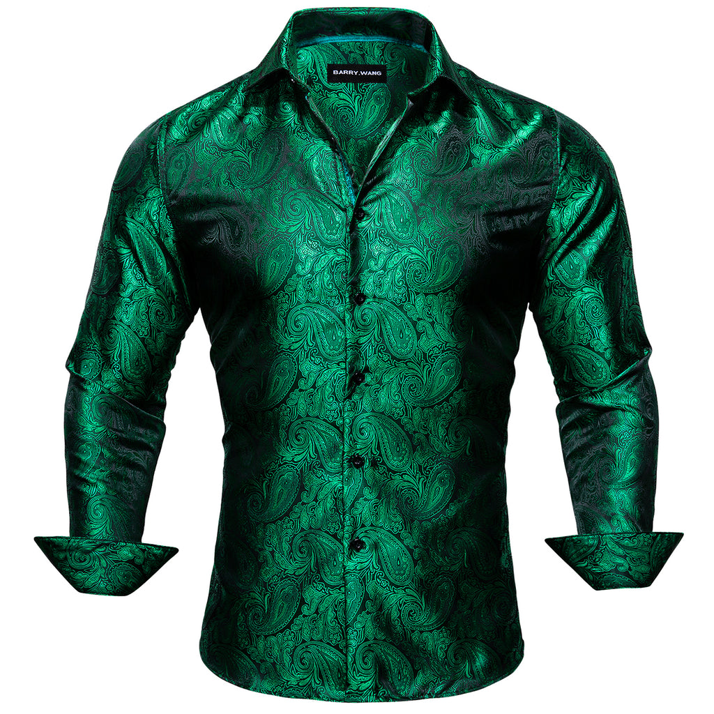 Barry. Wang Mens Paisley Dress Shirt Hunter Green 70s Disco Long Sleeve Button Down Shirt