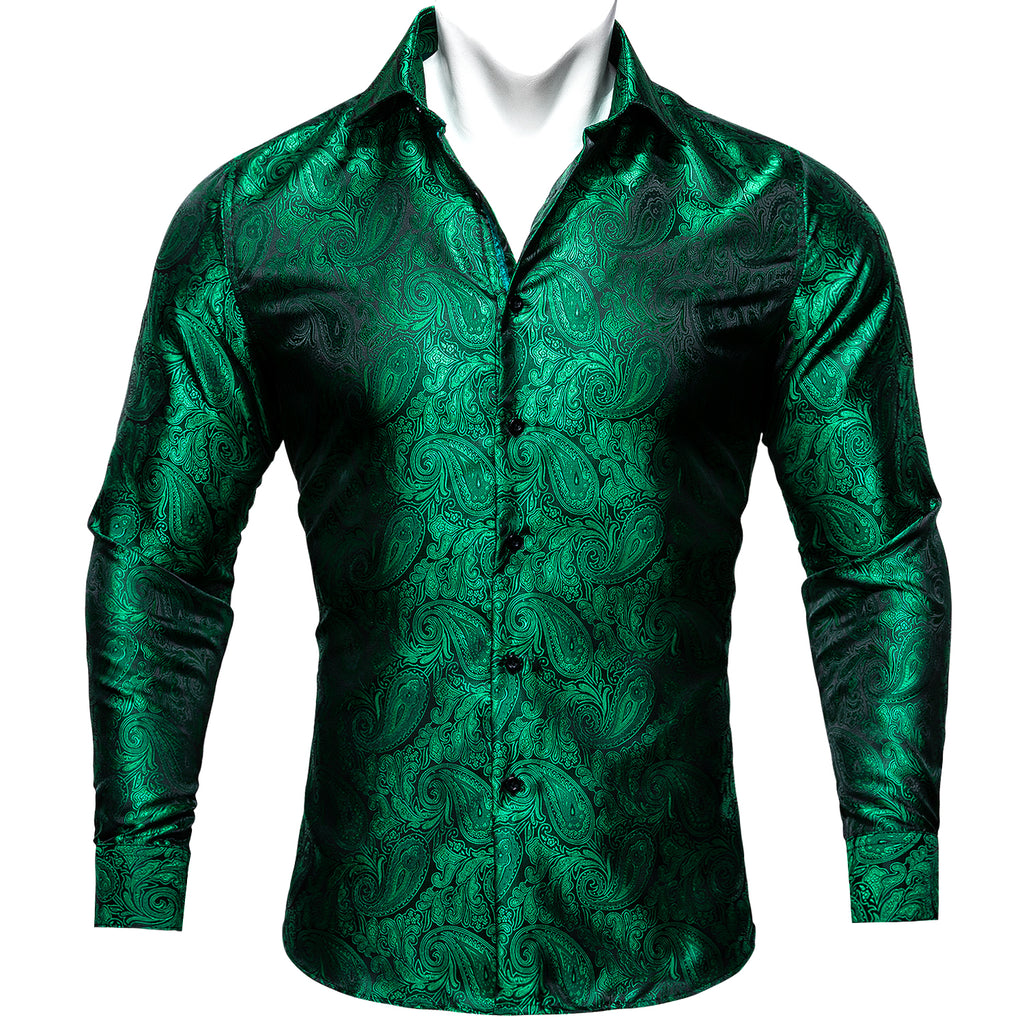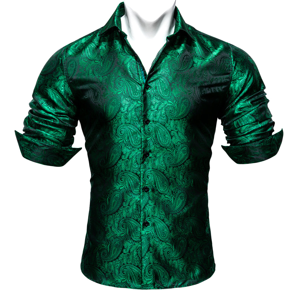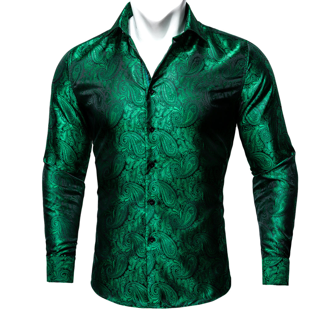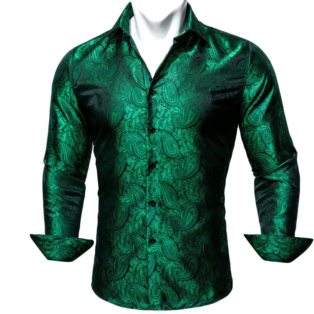 Barry. Wang Mens Paisley Dress Shirt Hunter Green 70s Disco Long Sleeve Button Down Shirt