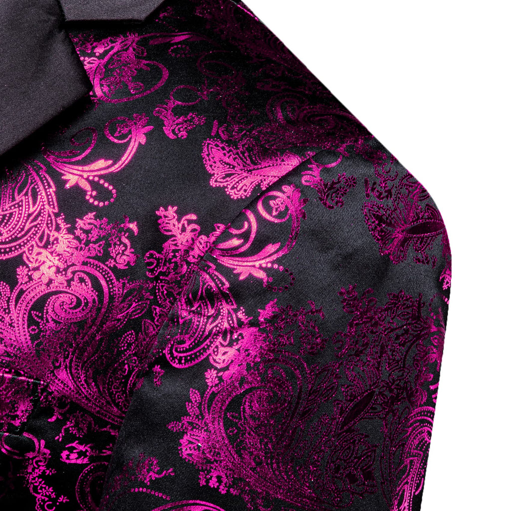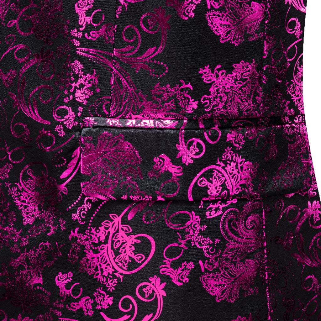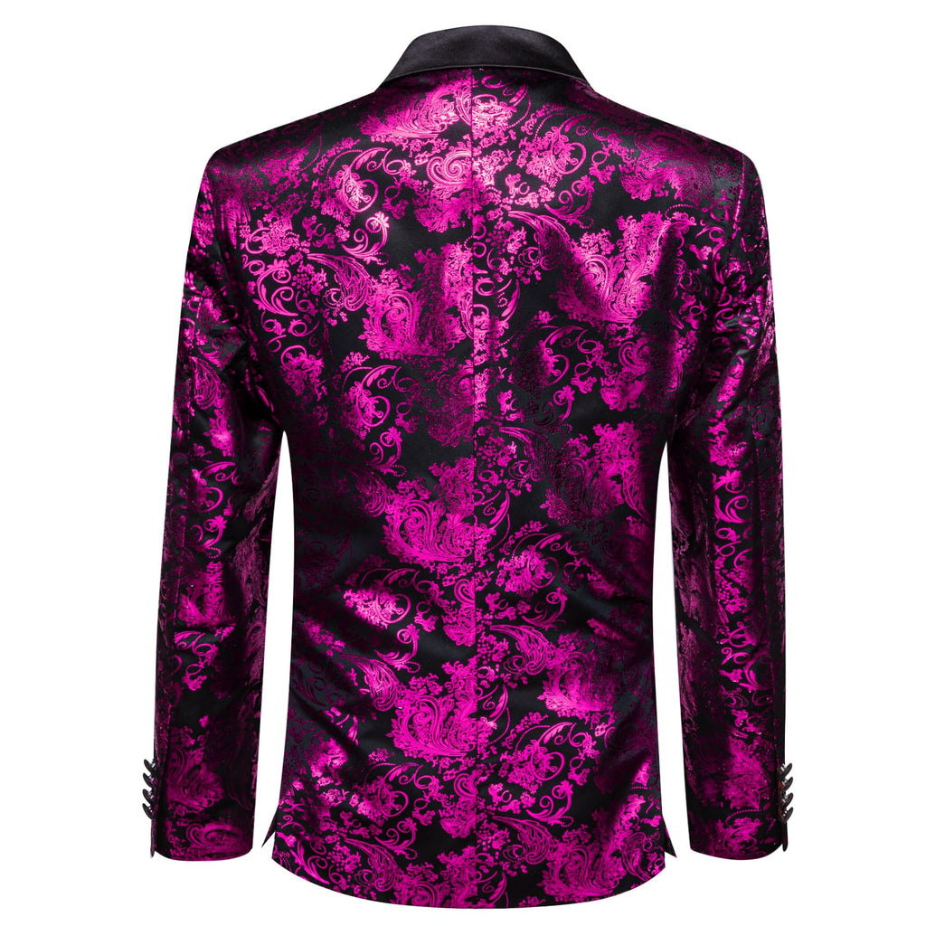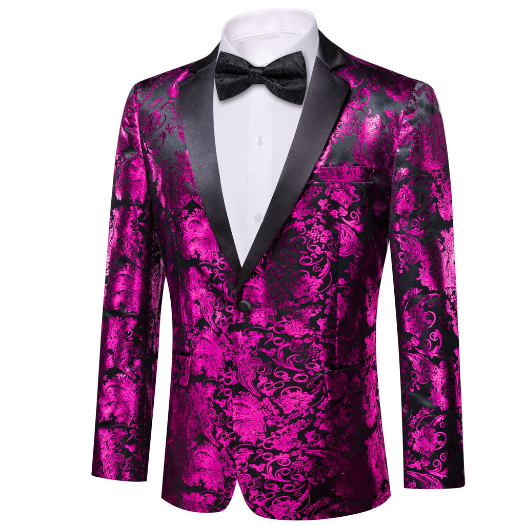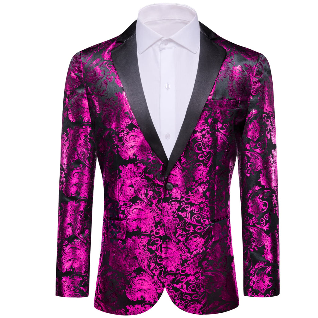 Barry. Wang Men's Hot Pink Floral Party Suit Notched Lapel Jacquard Blazer One Button Dinner Dress