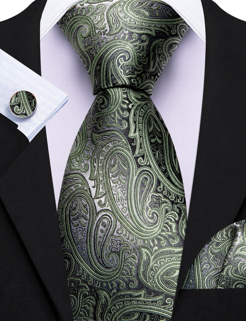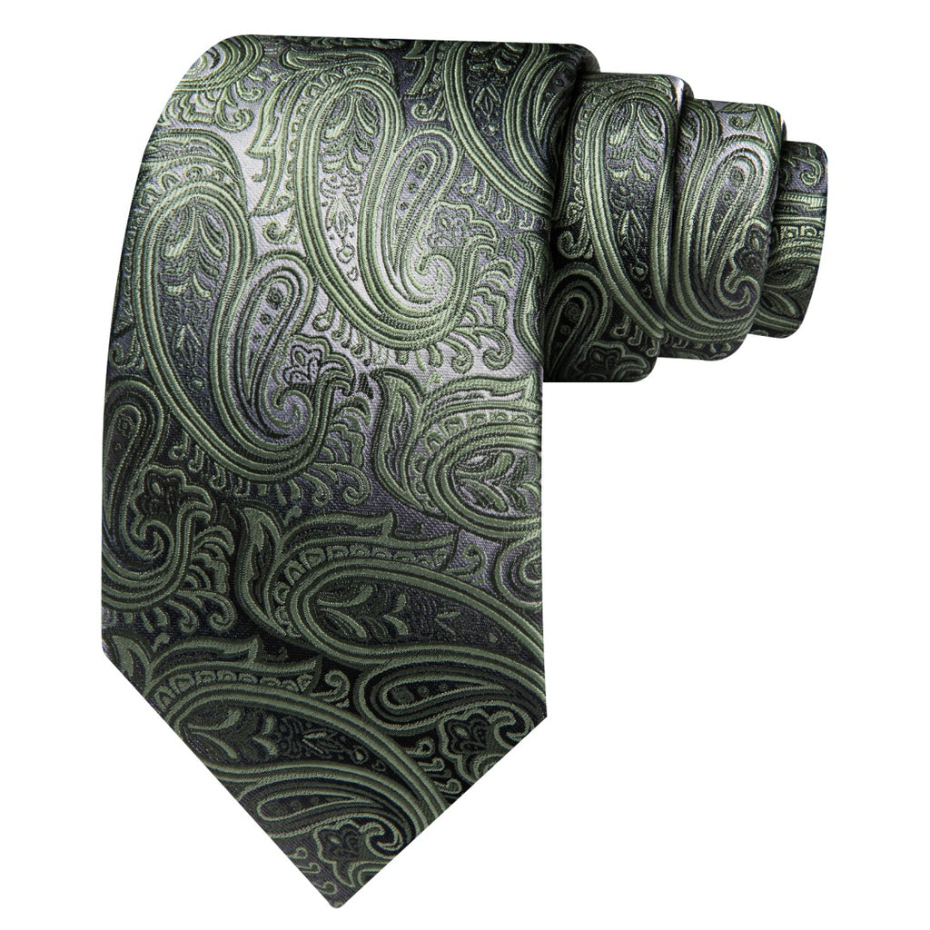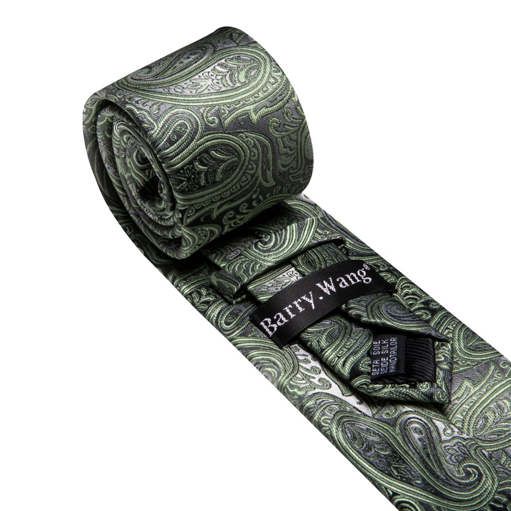 Barry. Wang Paisley Tie Grey and Sage Green Paisley Pattern Tie Set