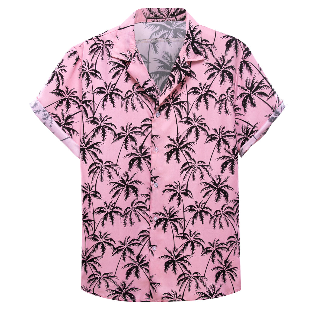 Barry. Wang Pink Black Coconut Tree Short Sleeves Shirt