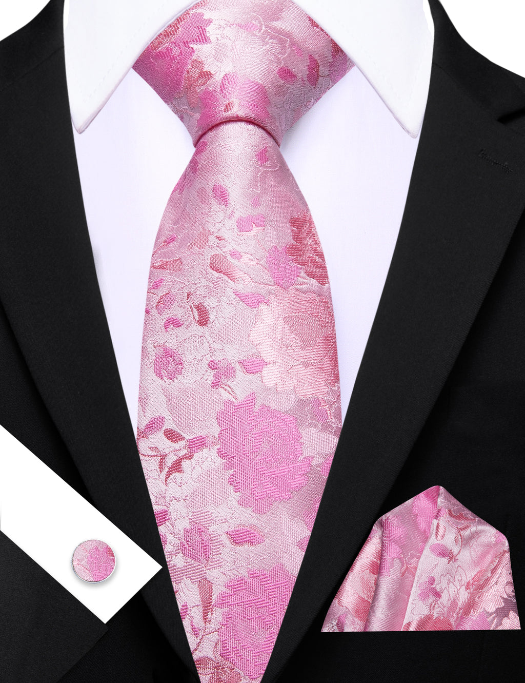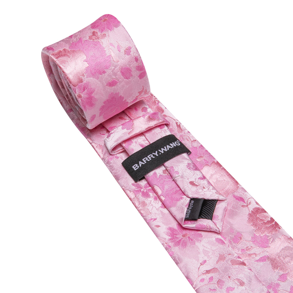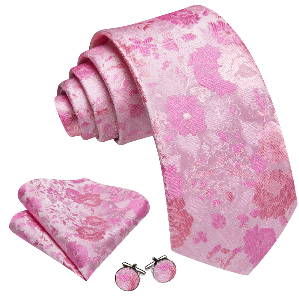 Barry. Wang Pink Floral Silk Men's Tie Handkerchief Cufflinks Set