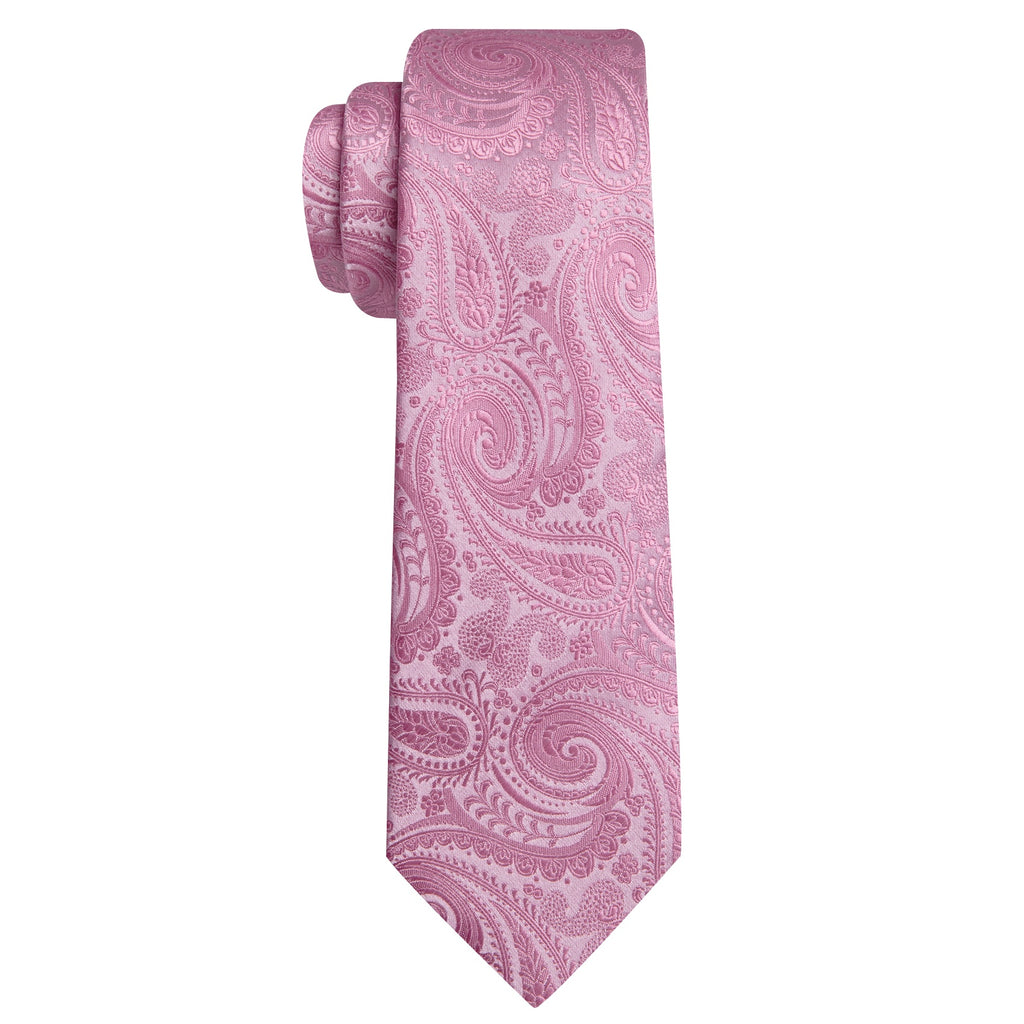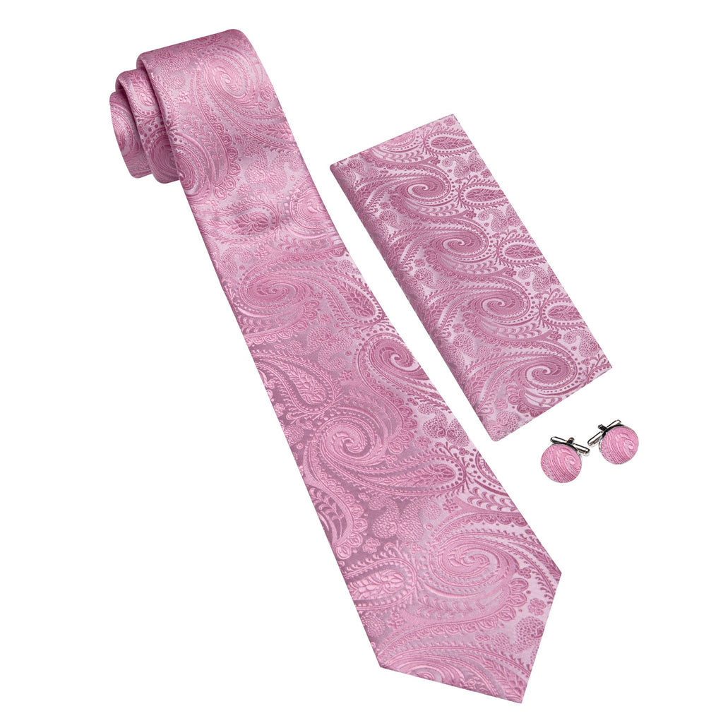 Barry. Wang Pink Tie Paisley Tie Silk Tie Pocket Square Cufflinks Set