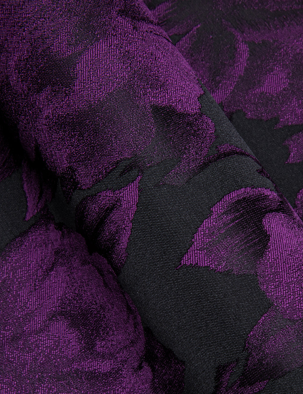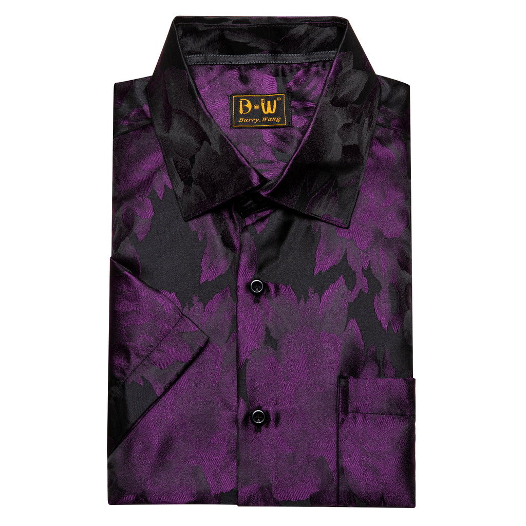 Barry. Wang Purple Black Floral Jacquard Short Sleeve Button Up Shirt for Men