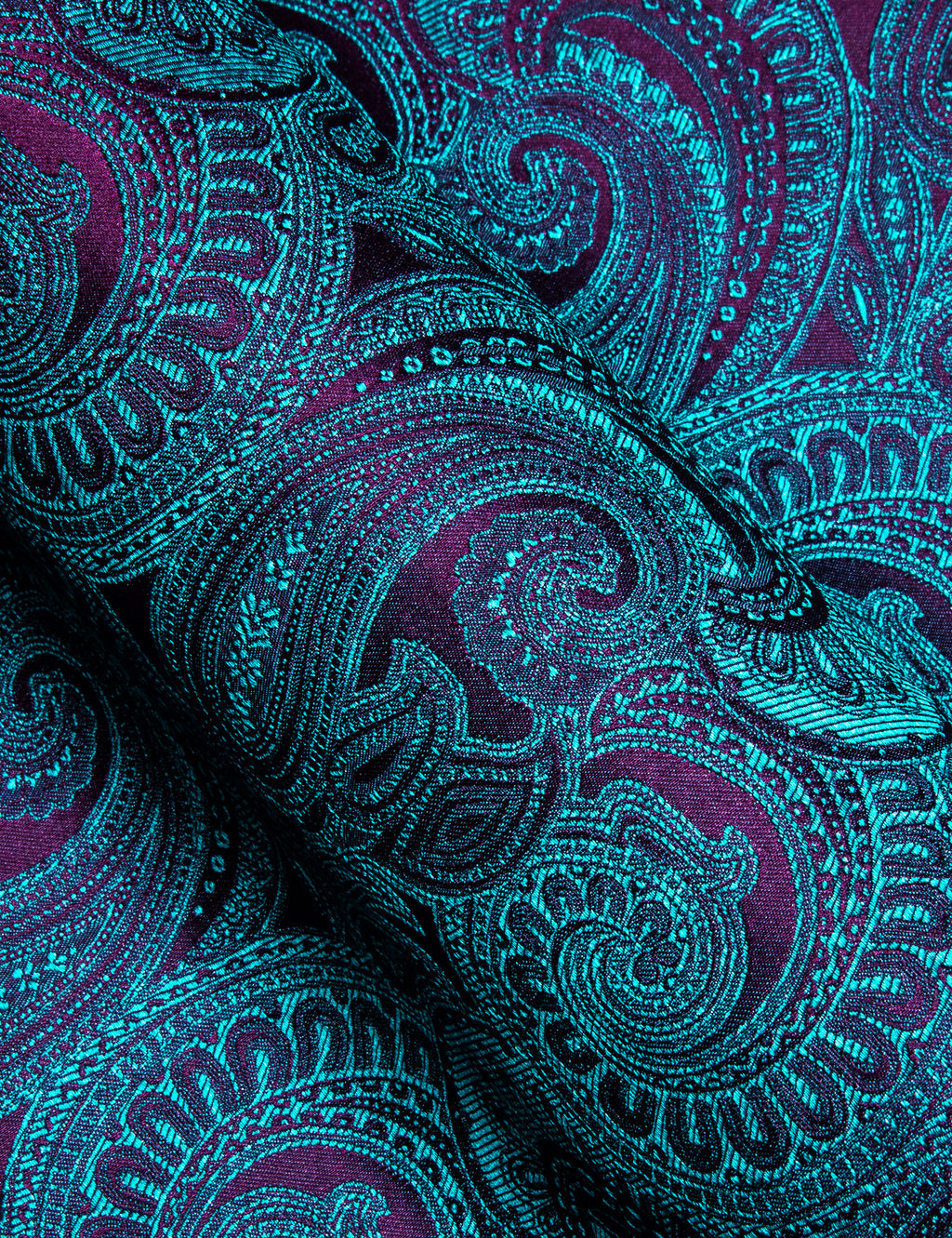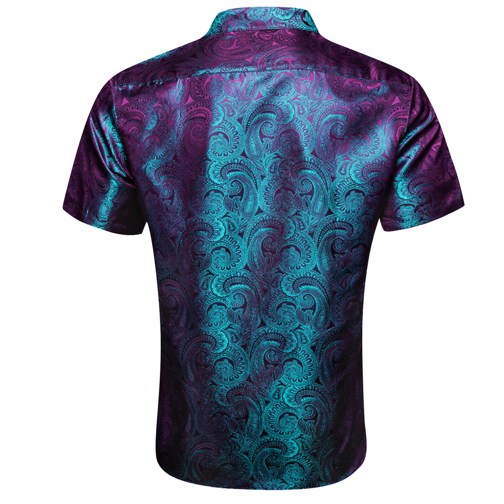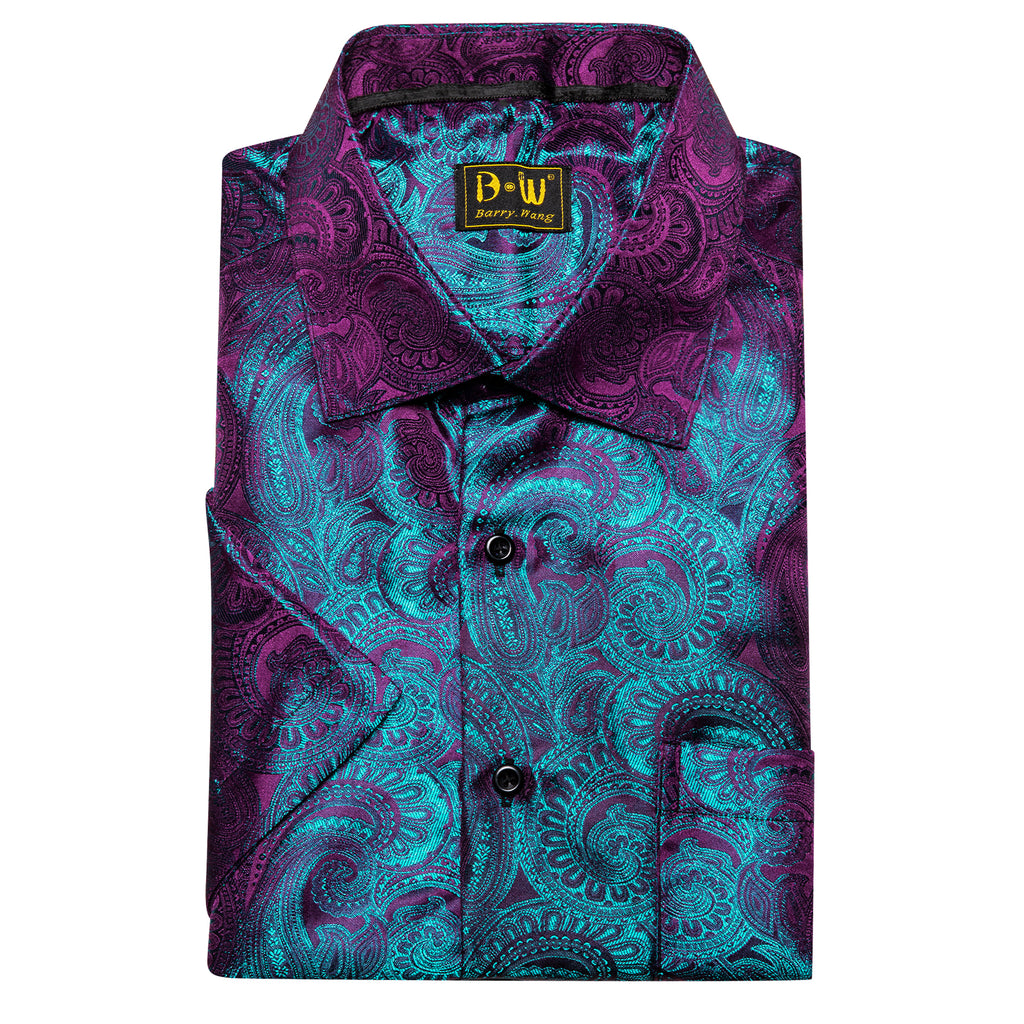 Barry. Wang Purple Blue Paisley Jacquard Short Sleeve Button Up Shirt for Men