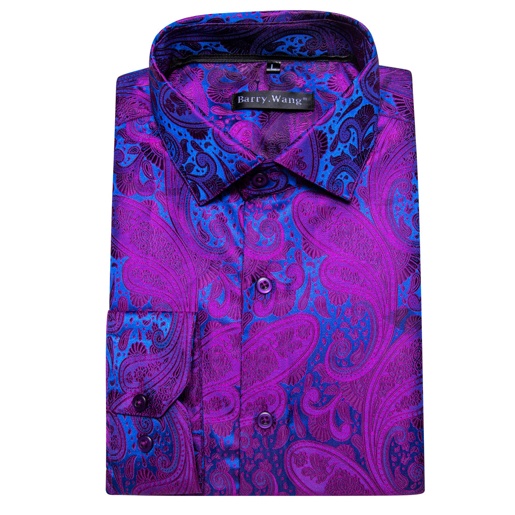 Barry. Wang Mens Purple Dress Shirt Blue Paisley 70s Disco Button Down Long Sleeve Shirt
