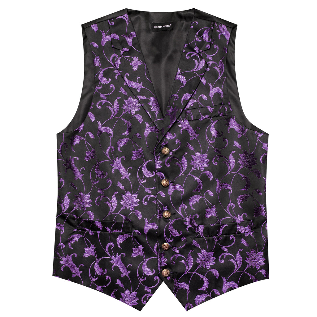 Barry. Wang Purple Floral Mens Vest Black Dress Waistcoat Bowtie Pocket Square Cufflinks Set