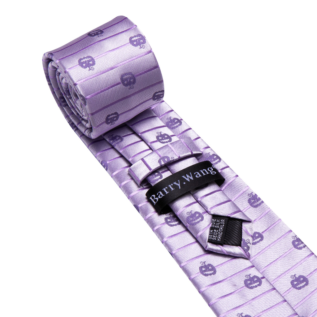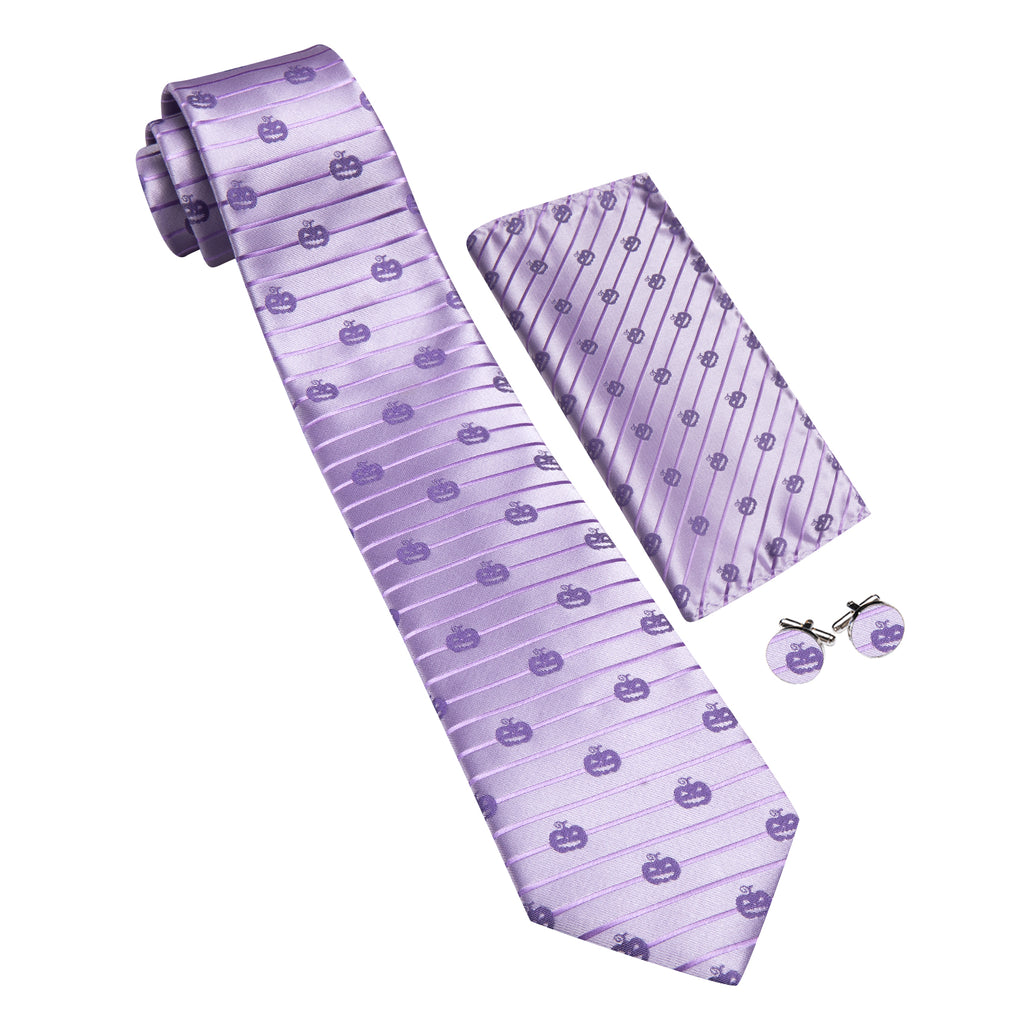 Barry. Wang Purple Necktie Halloween Pumpkin Silk Tie Pocket Square Cufflinks Set for Men