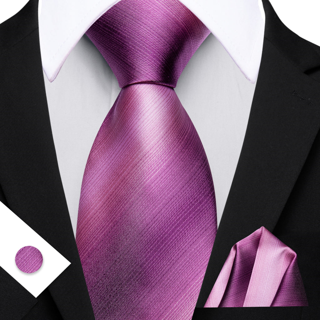 Barry. Wang Raspberry Striped Tie Mens Silk Tie Pocket Square Cufflinks Set