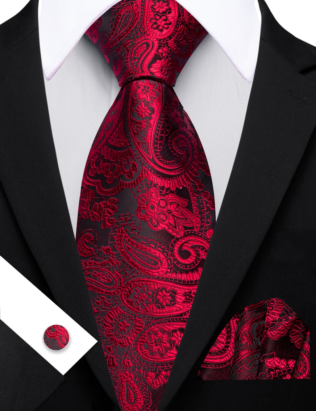 Barry. Wang Red Necktie Paisley Silk Tie Pocket Square Cufflinks Set for Men