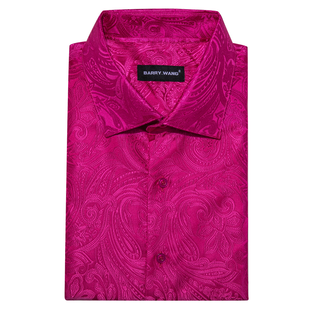 Barry. Wang Mens Fuchsia Pink Western Shirts Paisley Long Sleeve Button Down Dress Shirt
