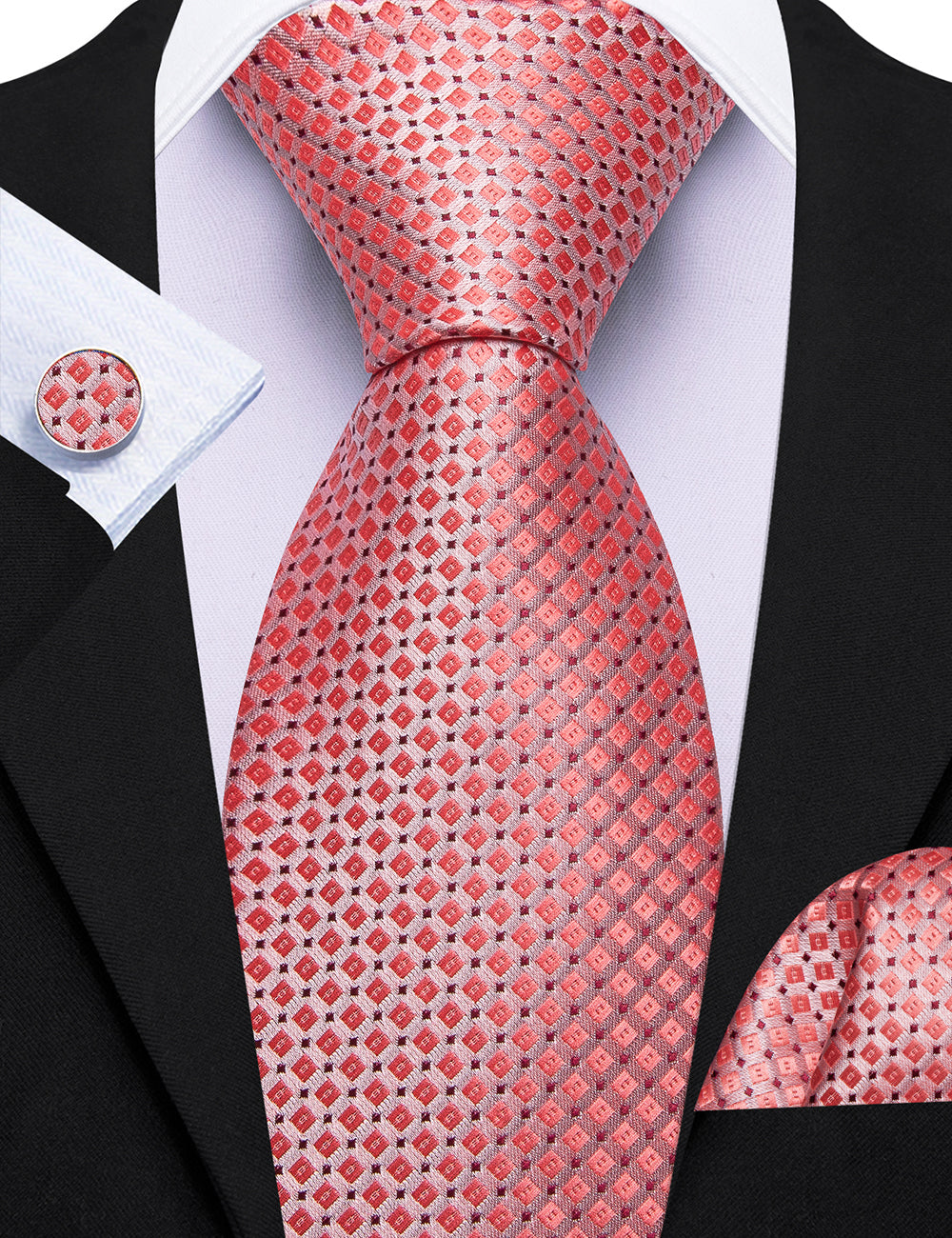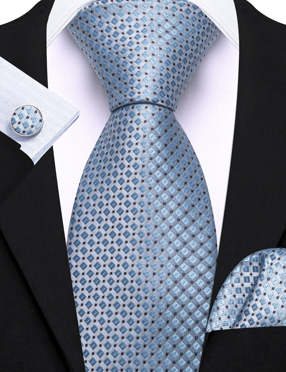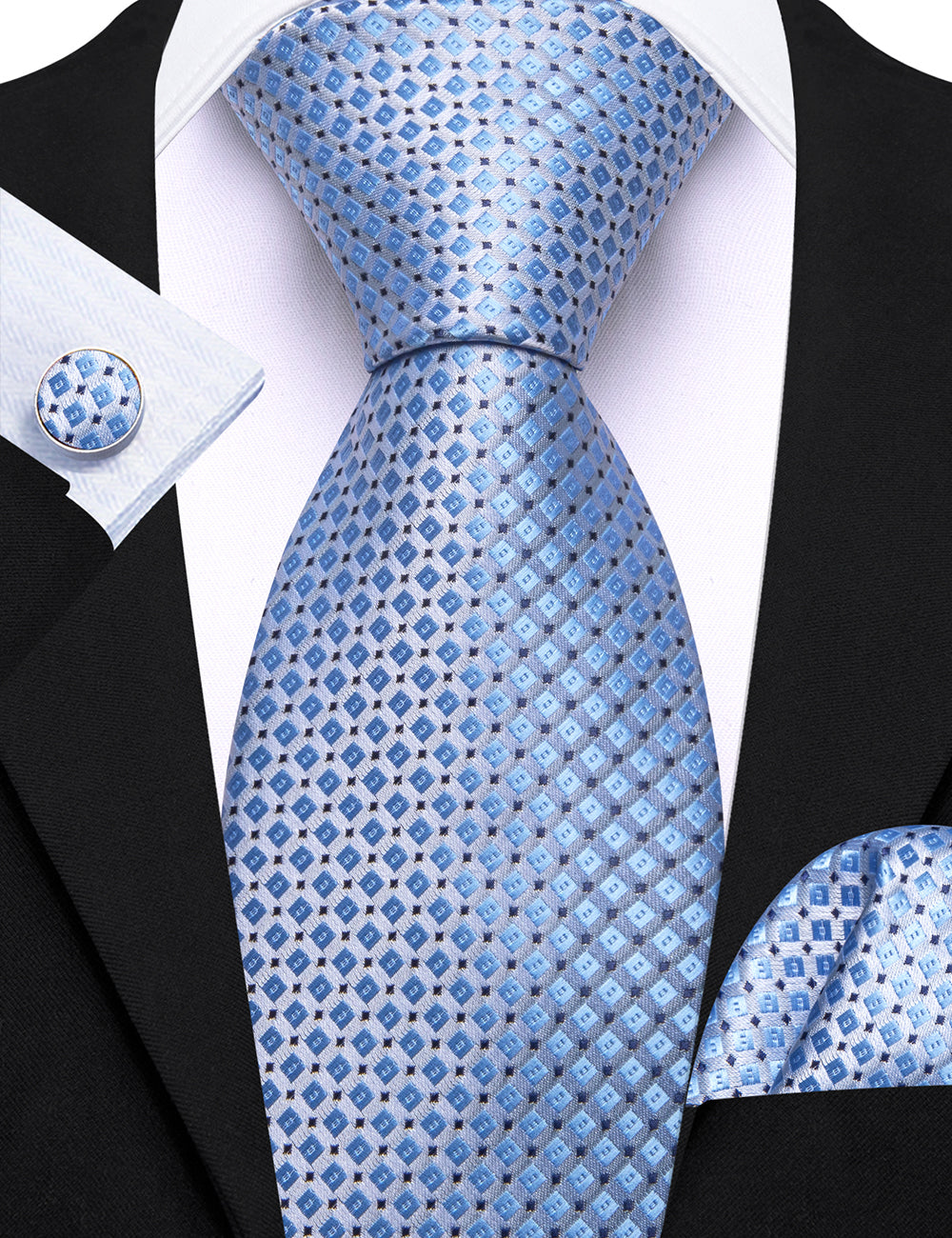 Barry. Wang Royal Blue Tie Plaid Silk Tie Pocket Square Cufflinks Set for Men