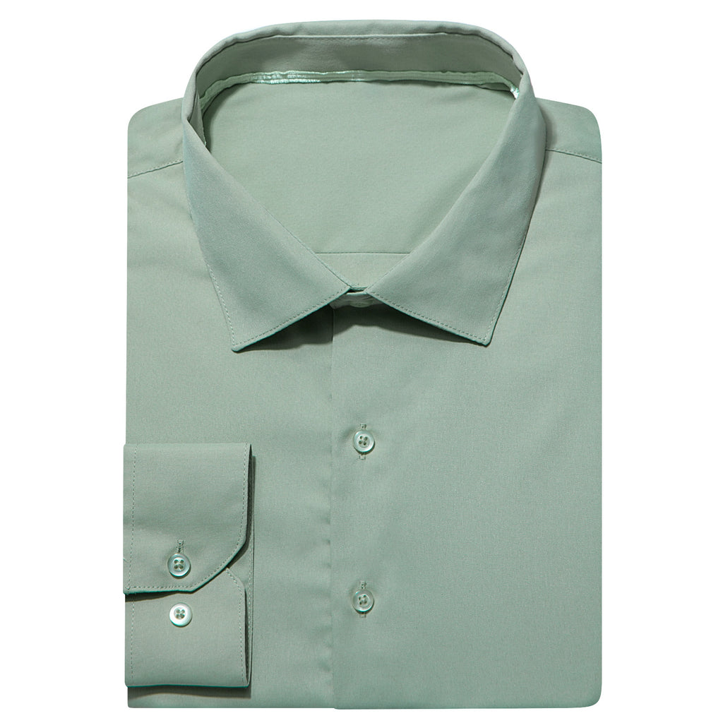 Barry. Wang Sage Green Dress Shirt Solid Business Casual Button Down Shirt