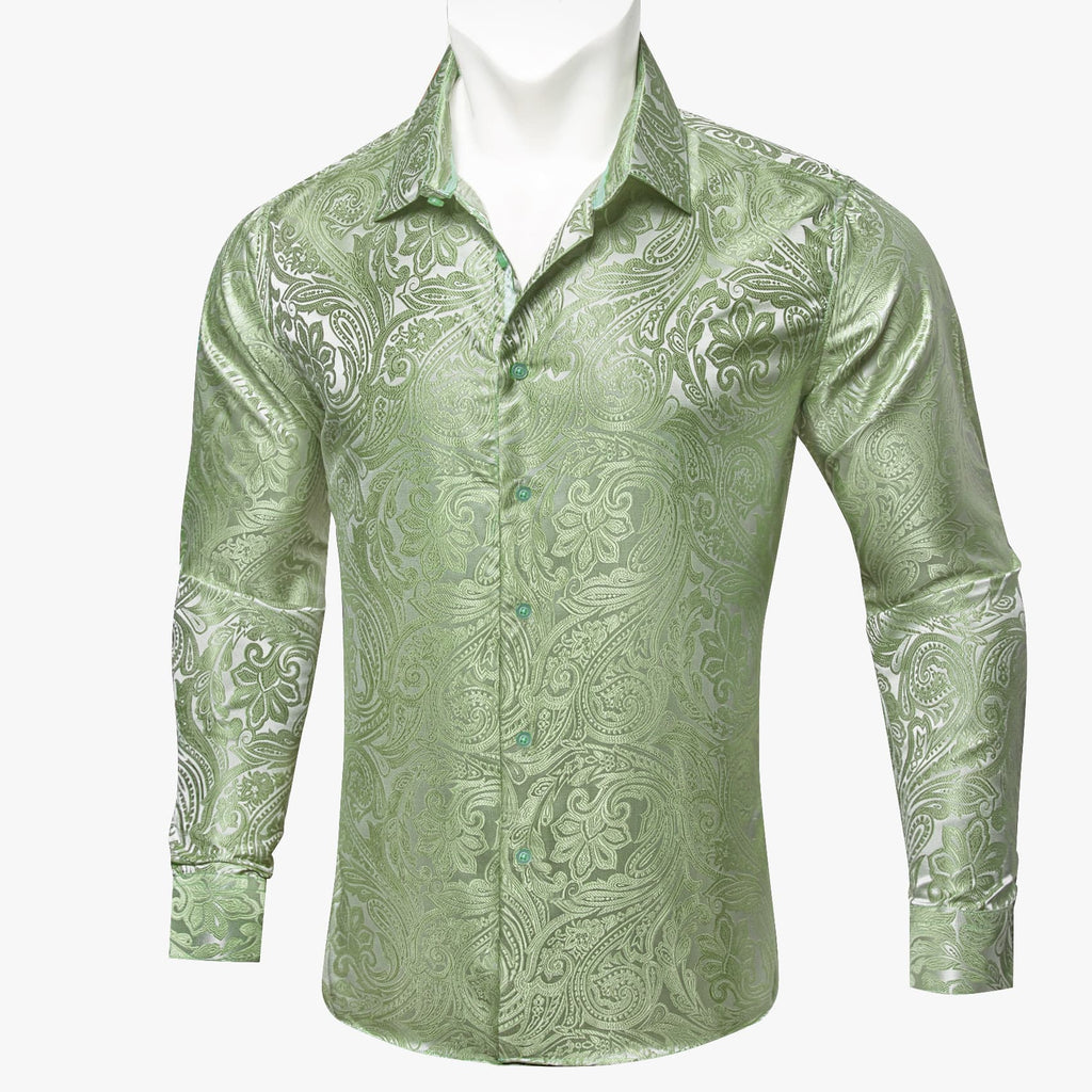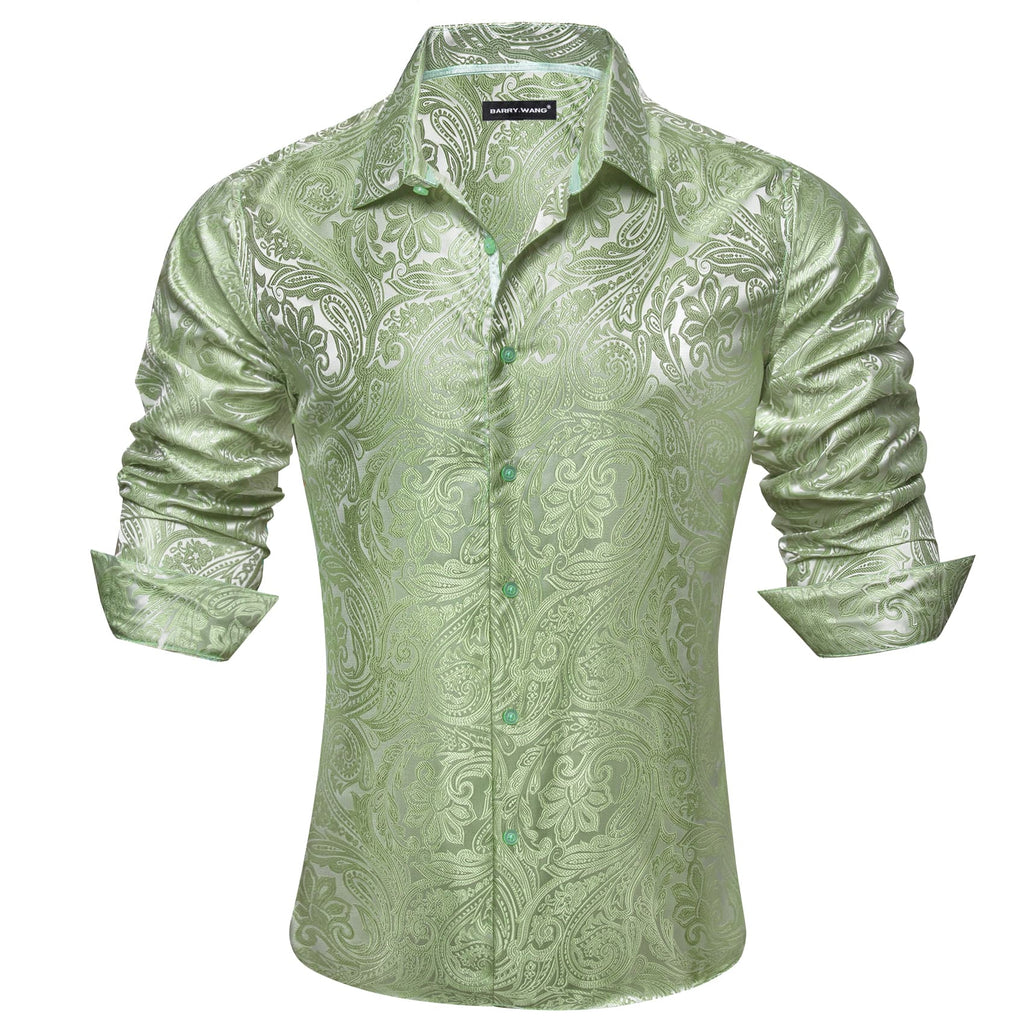 Barry. Wang Sage Green Casual Shirt for Men Paisley Long Sleeve Button Down Shirt