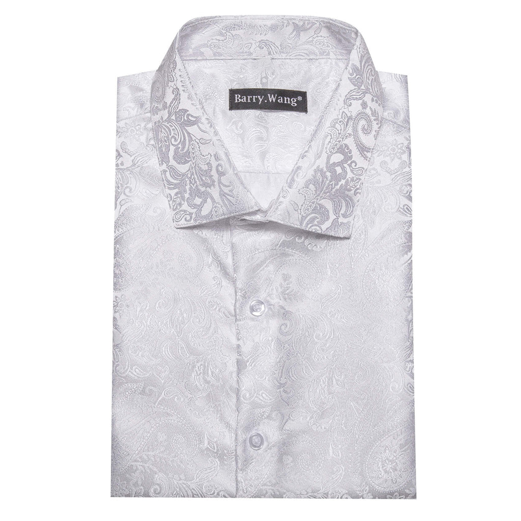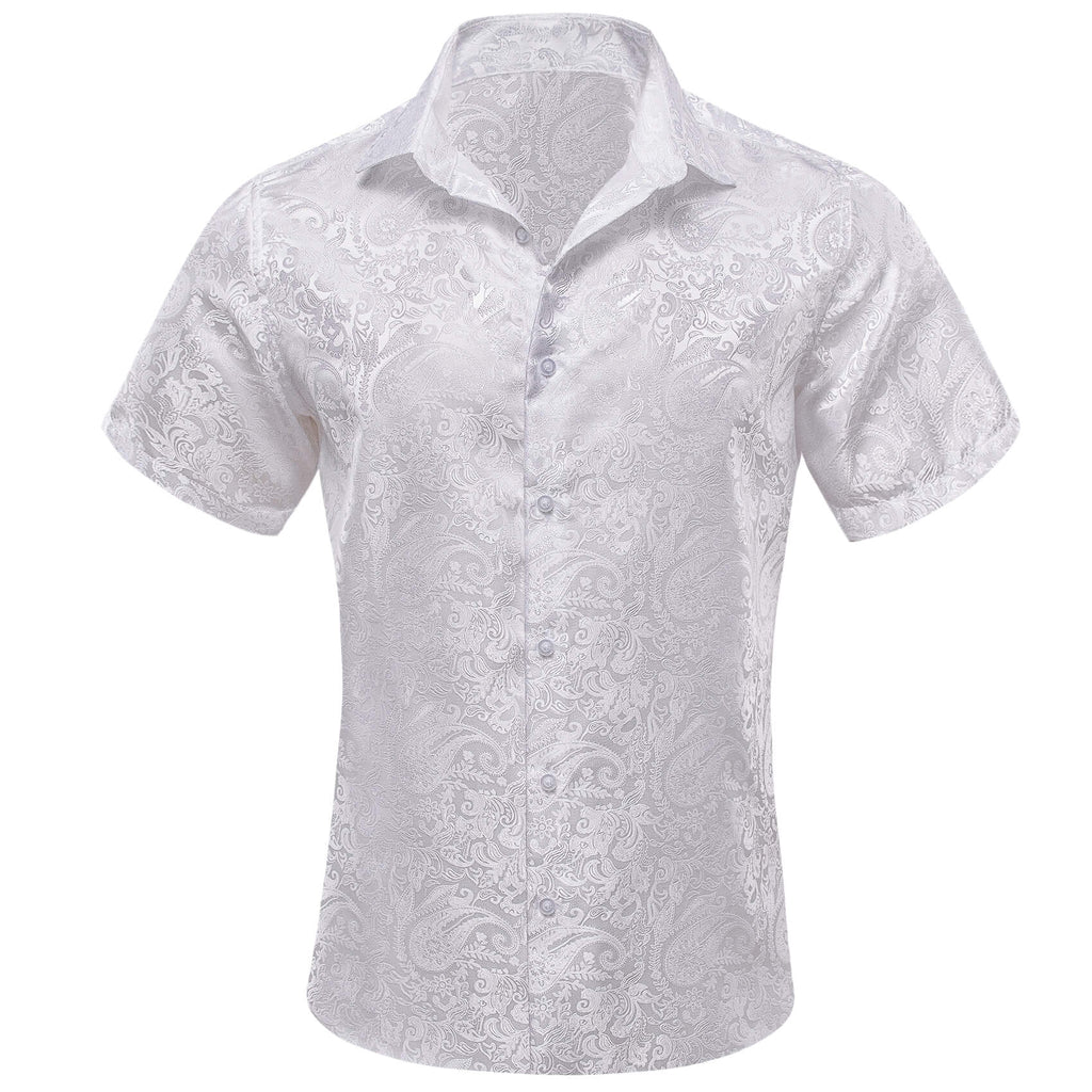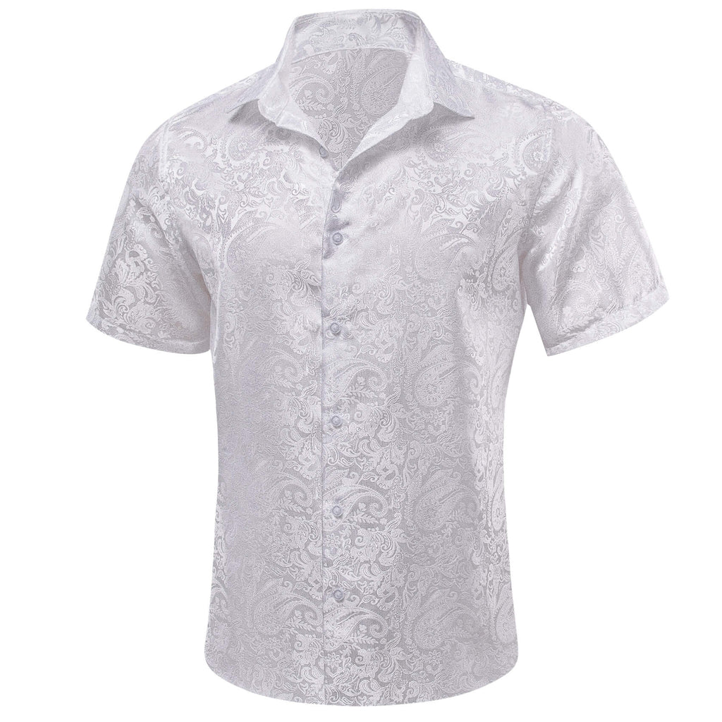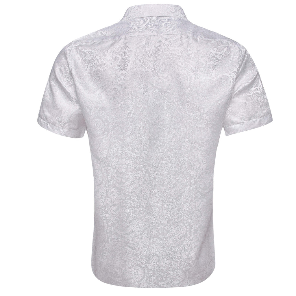 Barry. Wang Short Sleeve Shirt Jacquard Paisley White Shirt