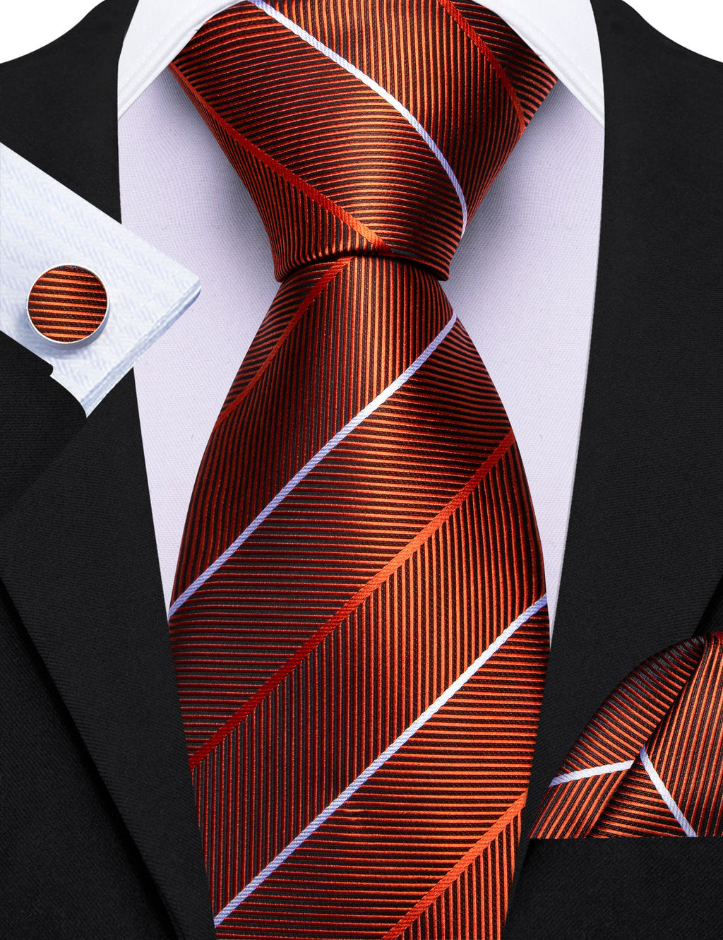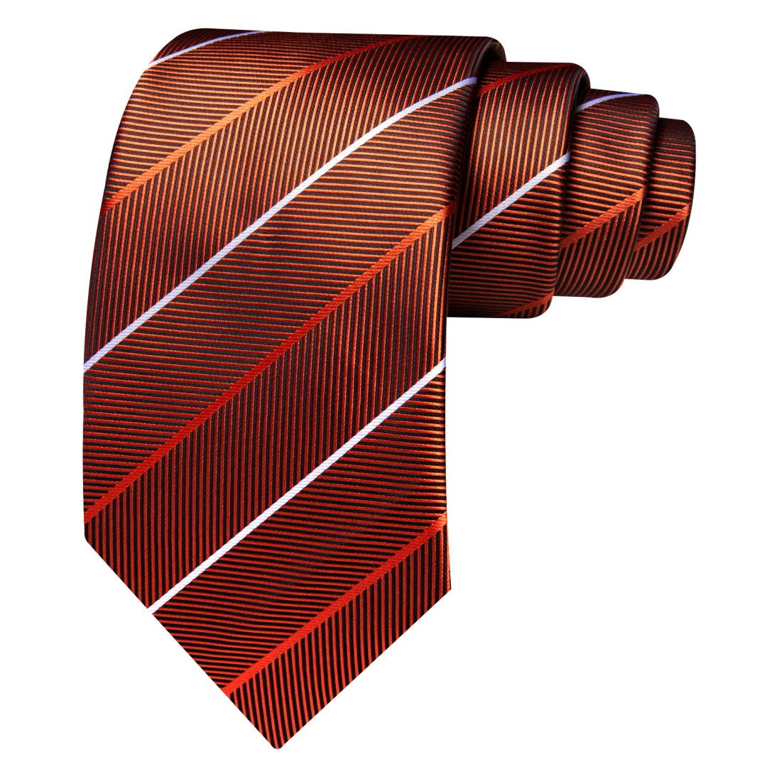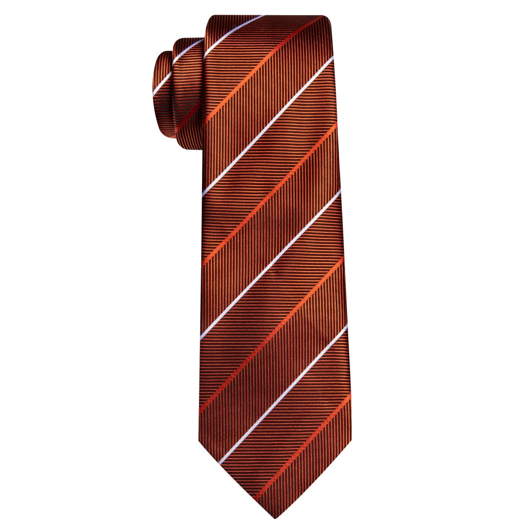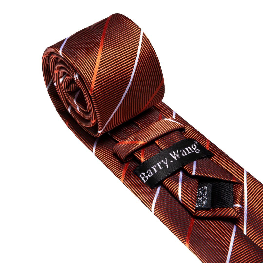 Barry. Wang Silk Mens Striped Tie Fire Brown Fashion Business Necktie Set