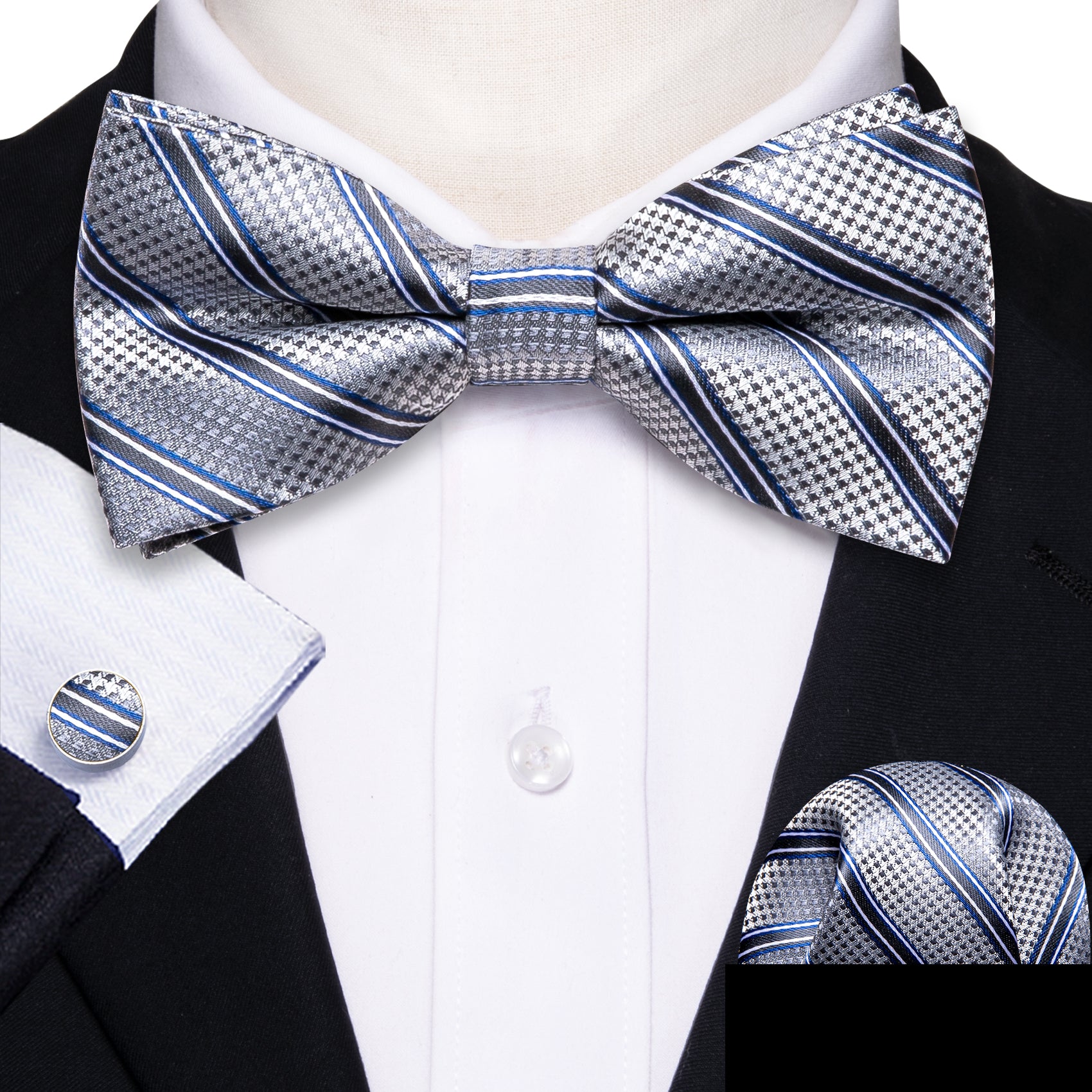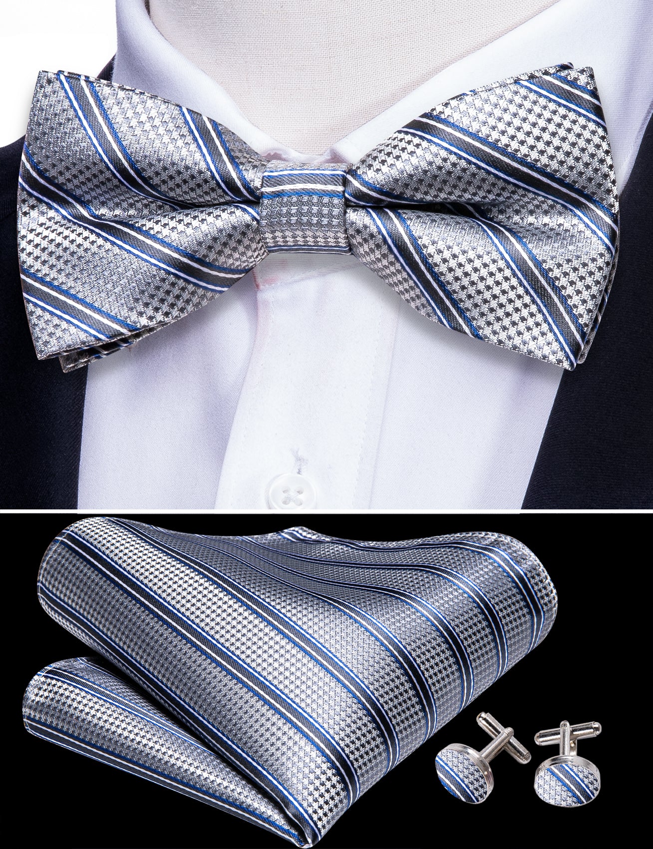 - What You Get: Same Design Pre-tied Bow tie, Pocket Square & Cufflinks