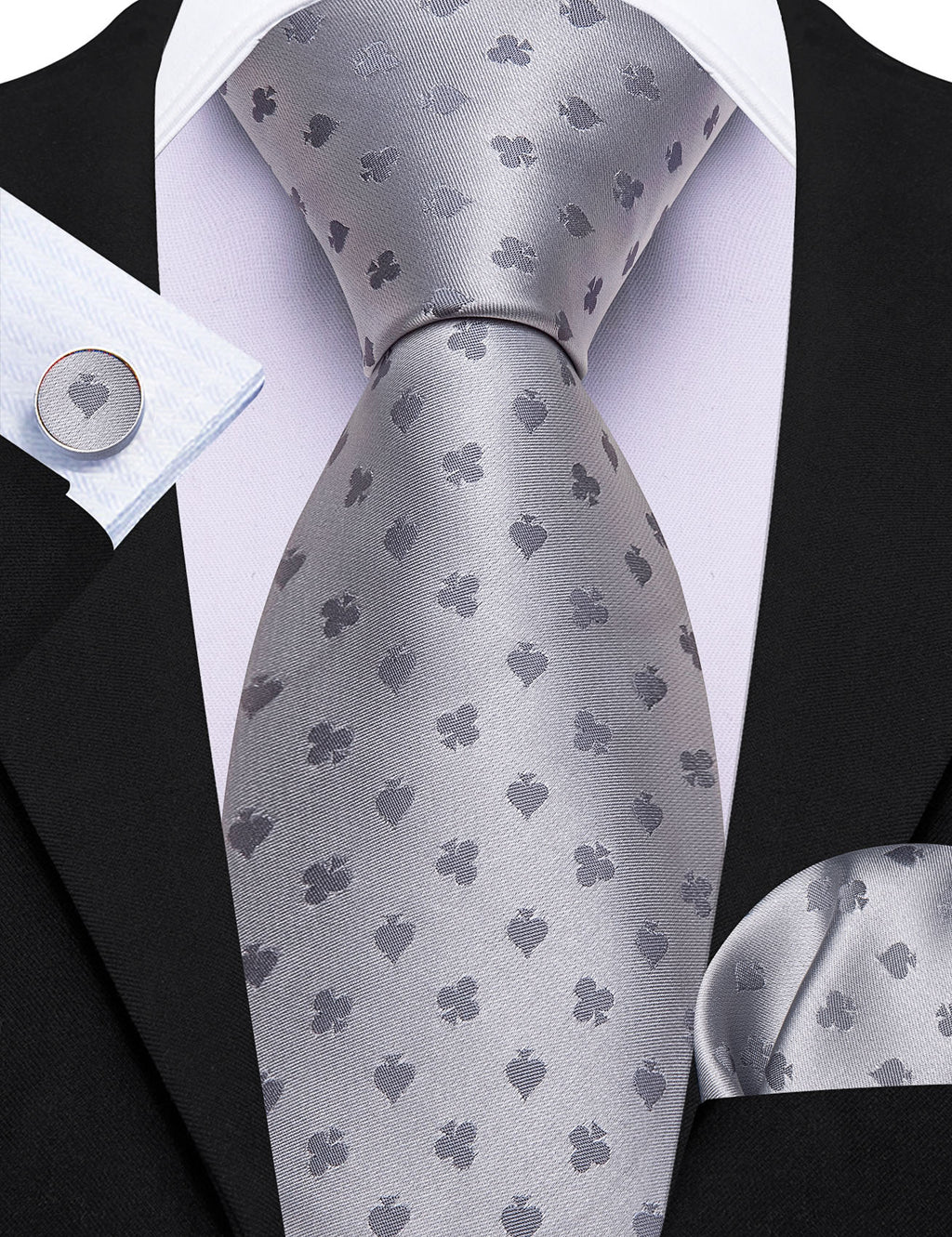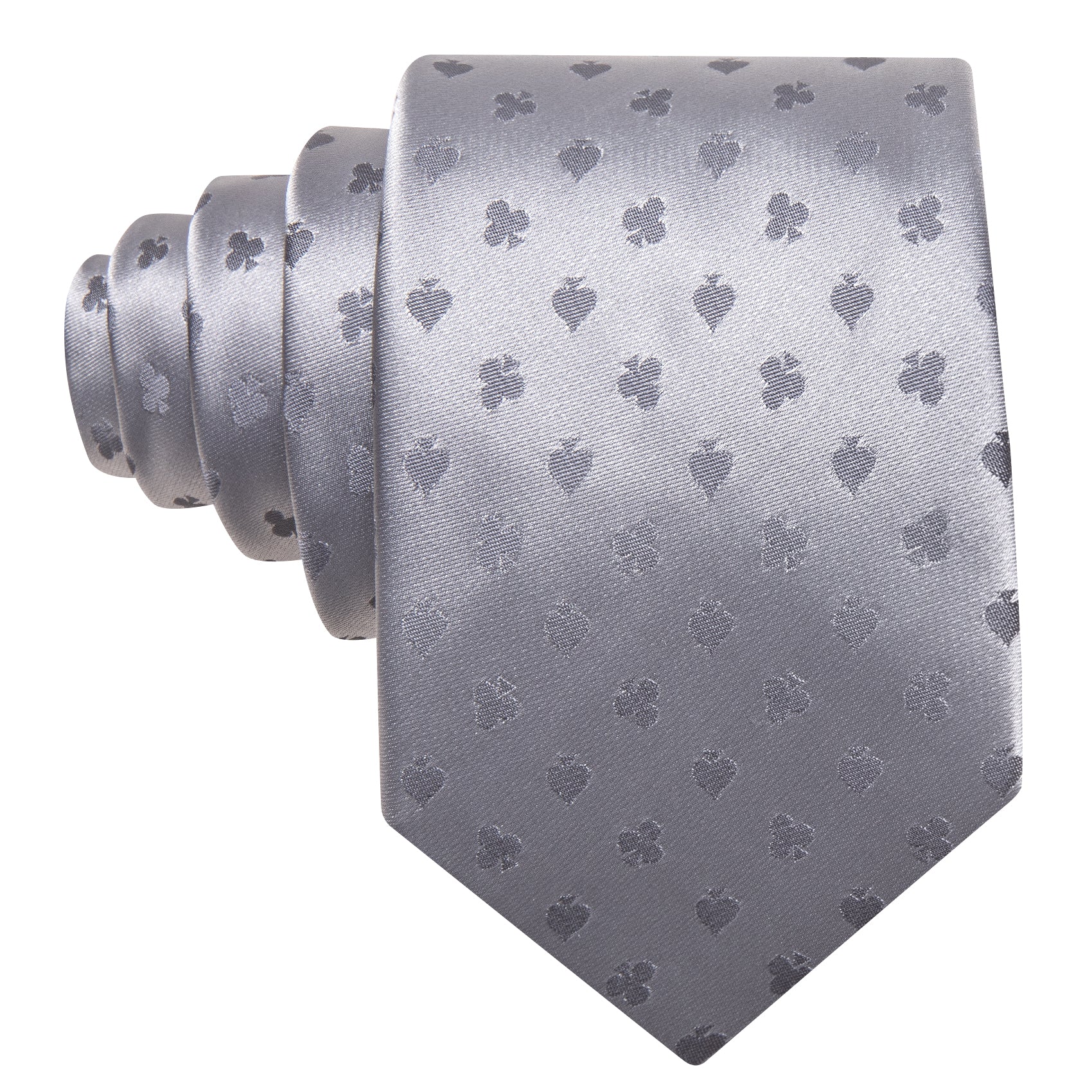 Barry. Wang Silver Tie Novelty Polka Dots Tie Pocket Square Cufflinks Set For Men