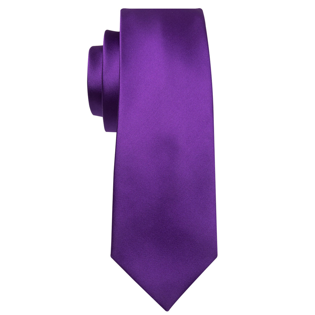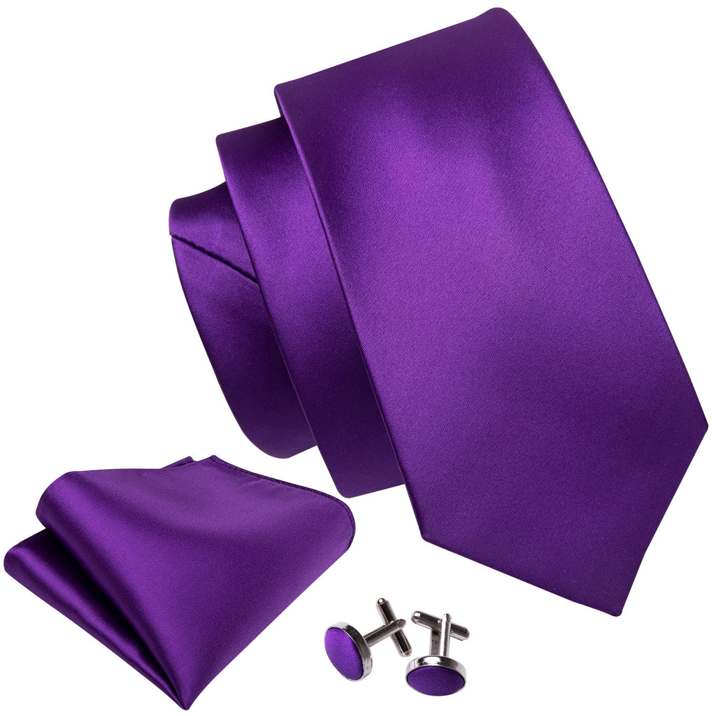Barry. Wang Solid Tie Deep Purple Tie Handkerchief Cufflinks Set