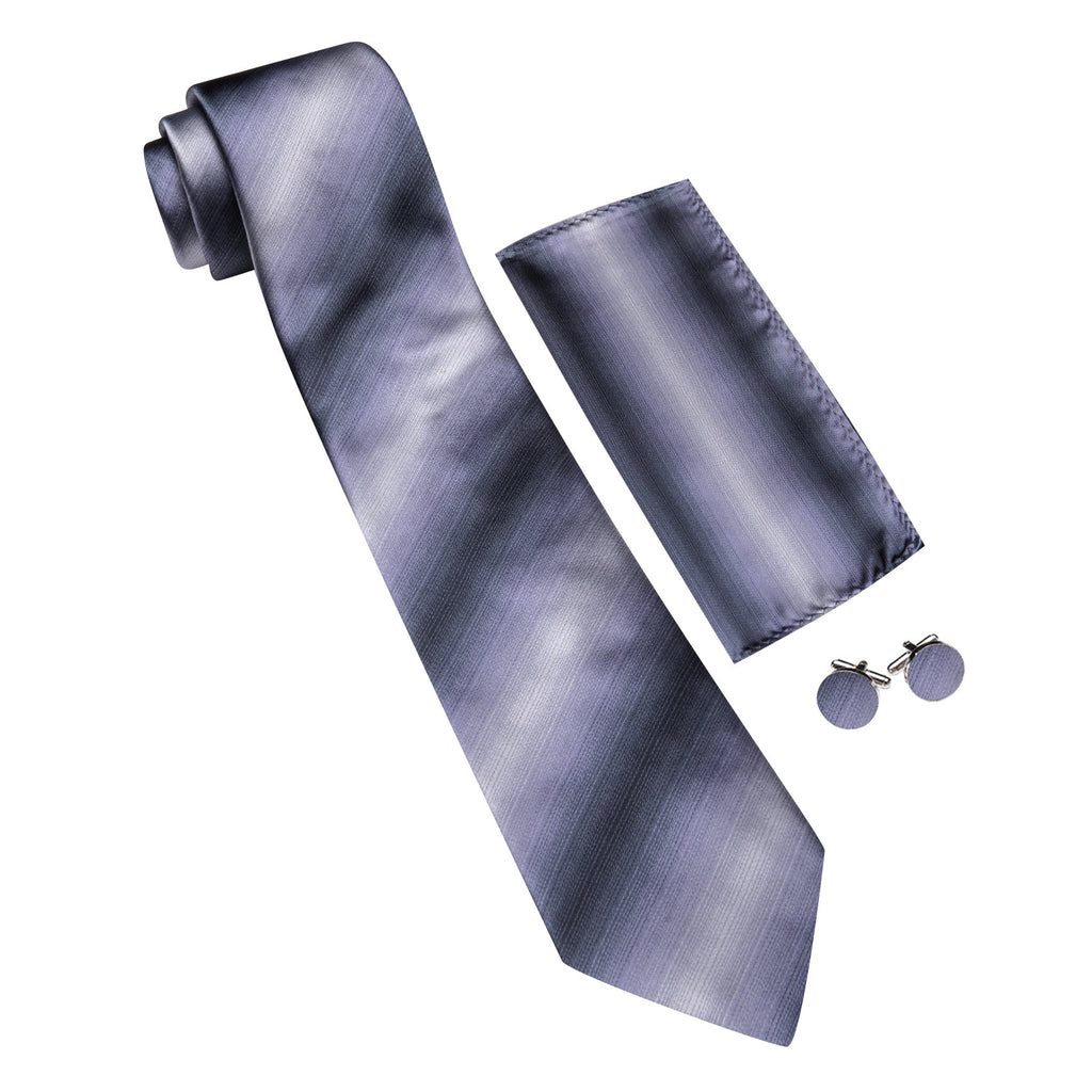 Barry. Wang Striped Tie Grey Mens Business Work Tie Pocket Square Cufflinks Set