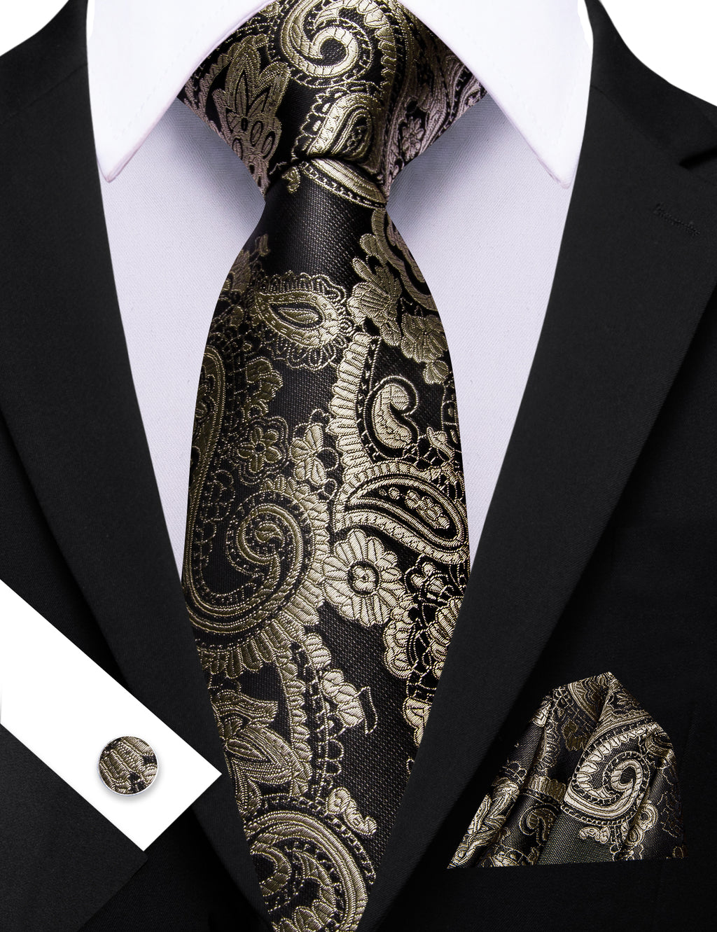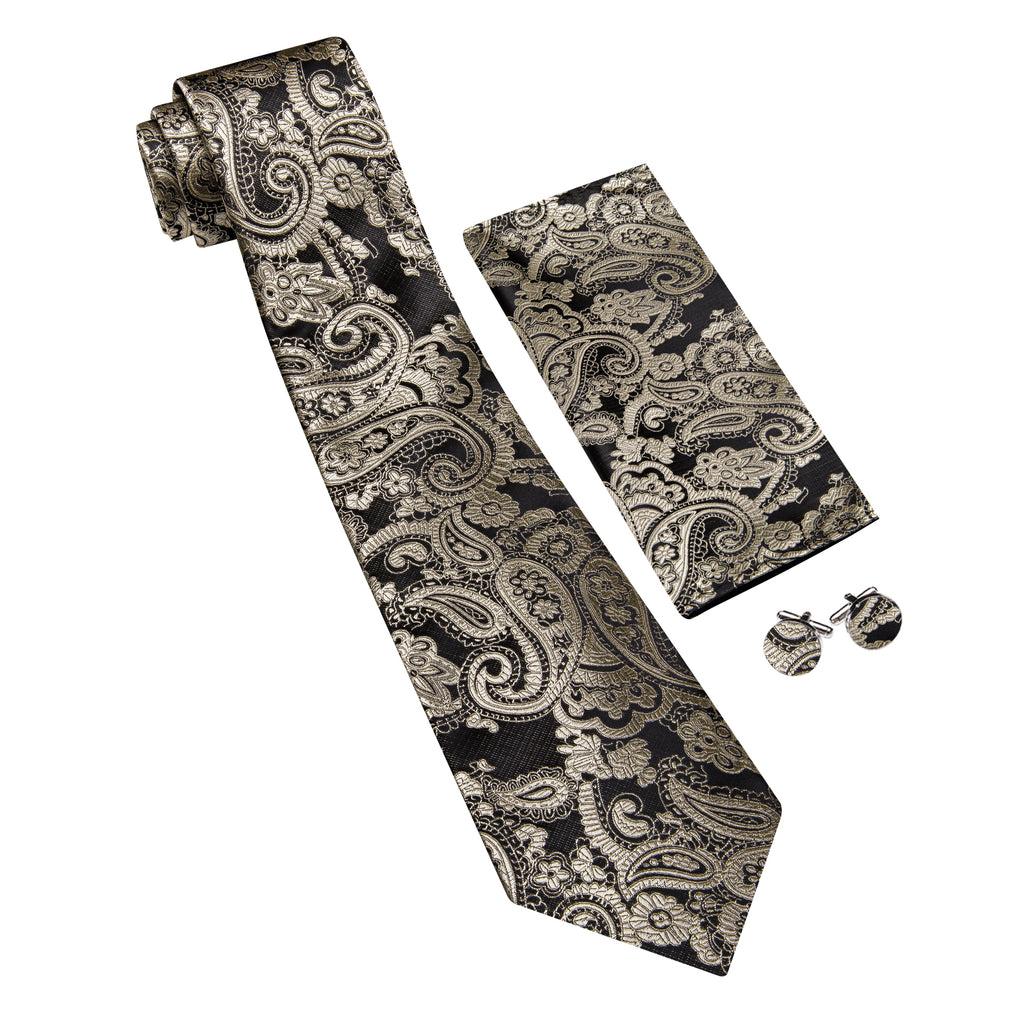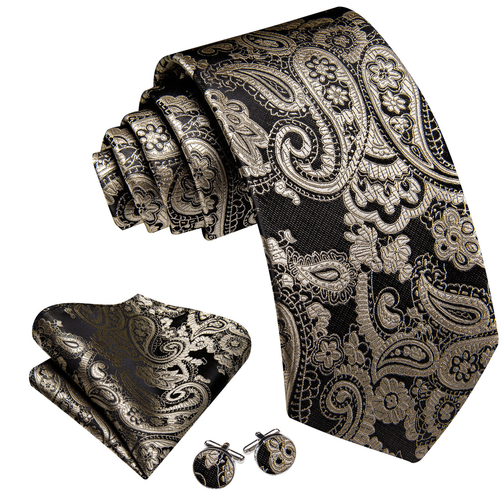 Barry. Wang Taupe Brown Paisley Tie Pocket Square Cufflinks Set Silk Mens Ties