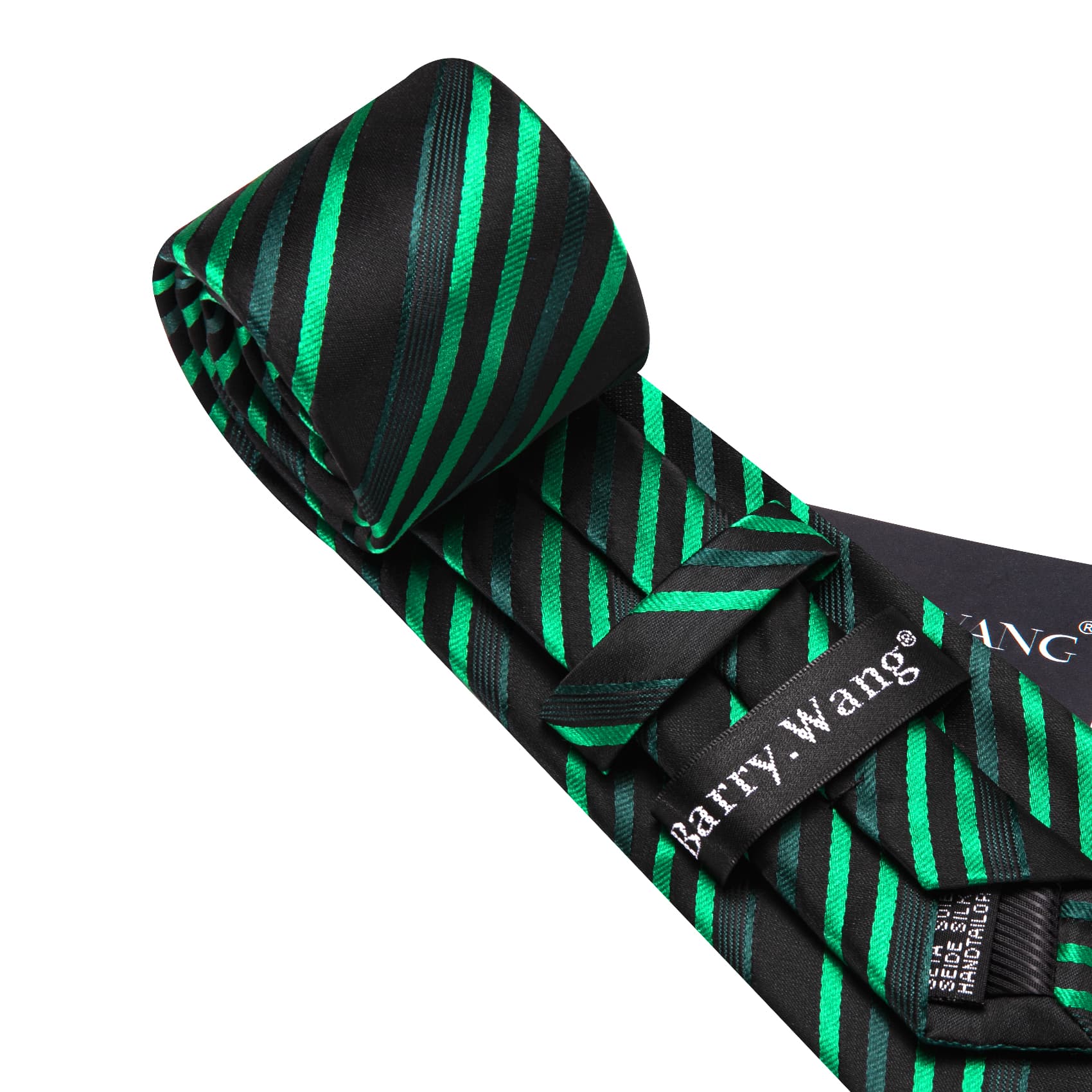 Barry. Wang Tie Striped Black Green Necktie Hanky Cufflinks Set
