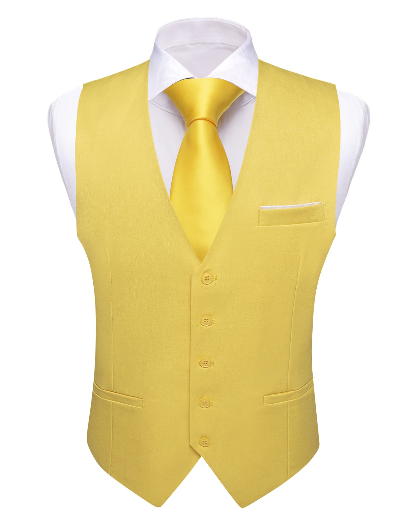 Barry. Wang Mens Yellow Casual Vest Slim Fit Solid Leisure Party Tuxedo Waistcoat