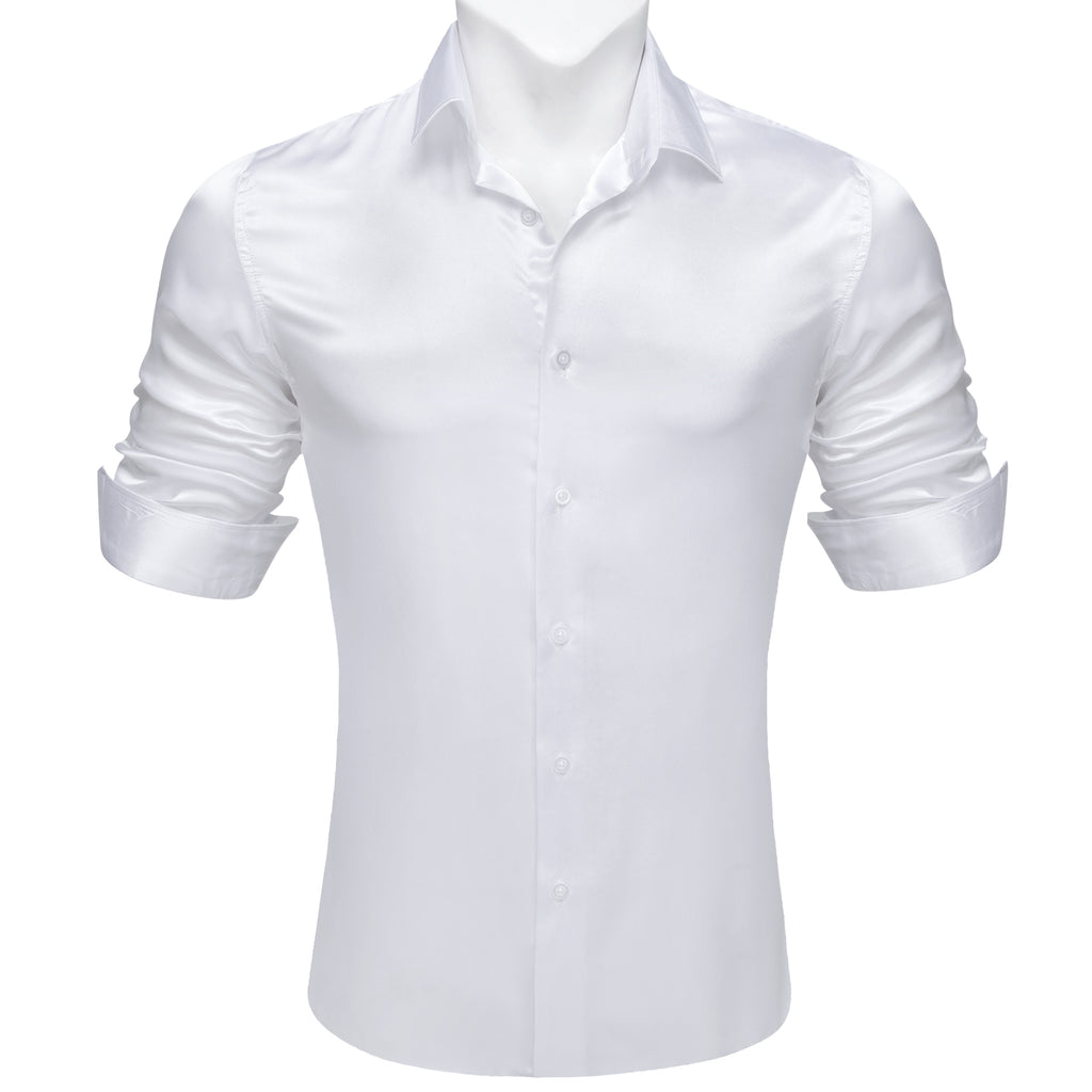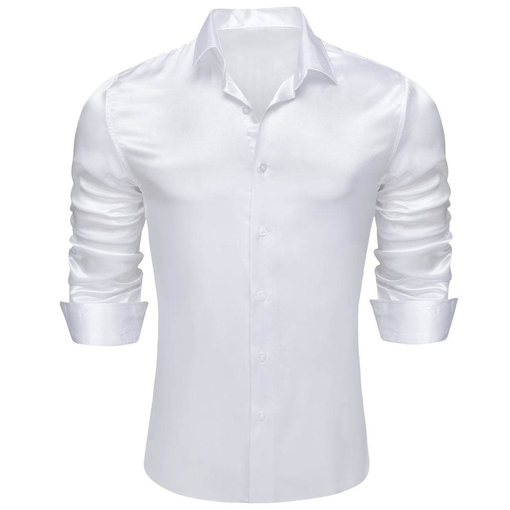 Barry. Wang White Satin Mens Dress Shirts Long Sleeve Solid Formal Shirts