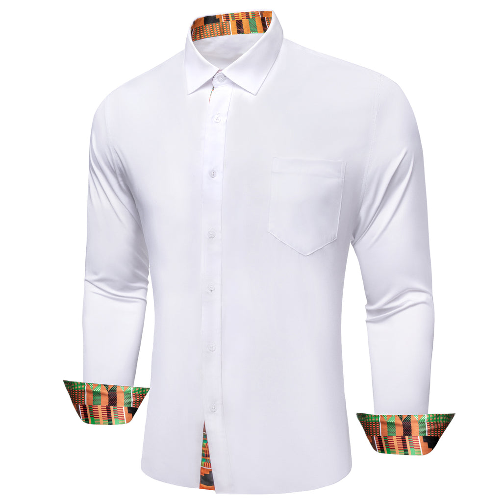 Barry. Wang White Yellow Splicing Shirt Mens Silk Long Sleeve Button Down Novelty Shirt