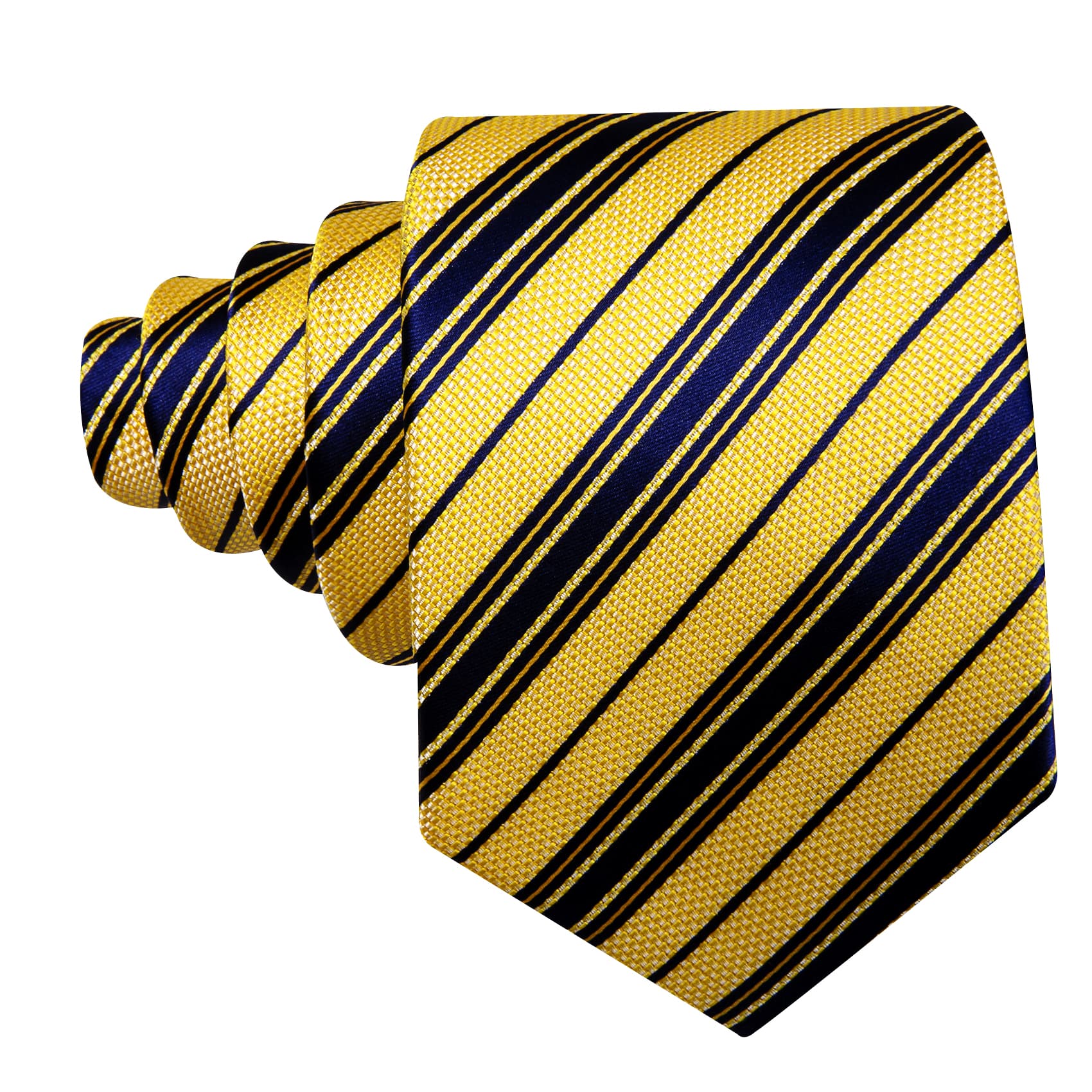 Barry. Wang Yellow Navy Blue Striped Men's Tie Handkerchief Pocket Set