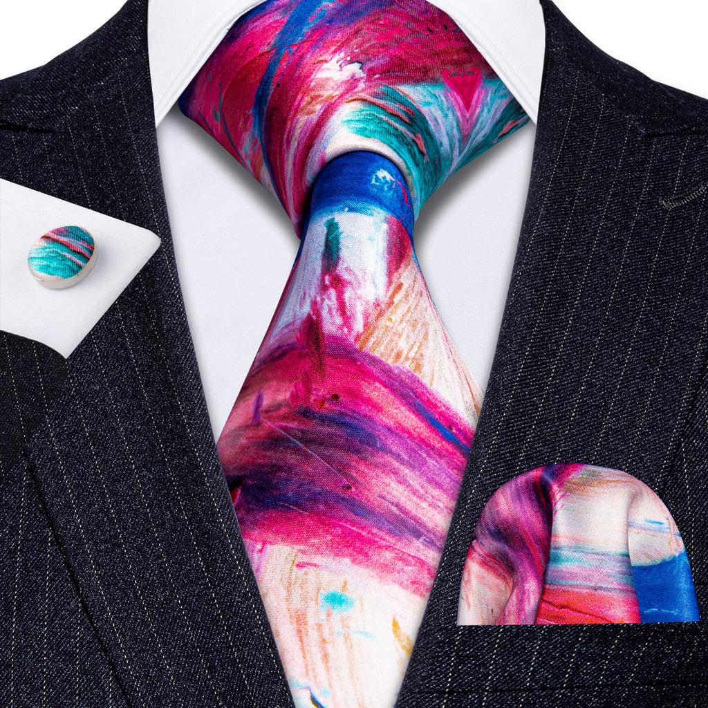 Barry. Wang Black Orange Novelty Silk Tie Hanky Cufflinks Set for Men