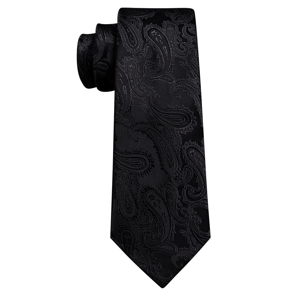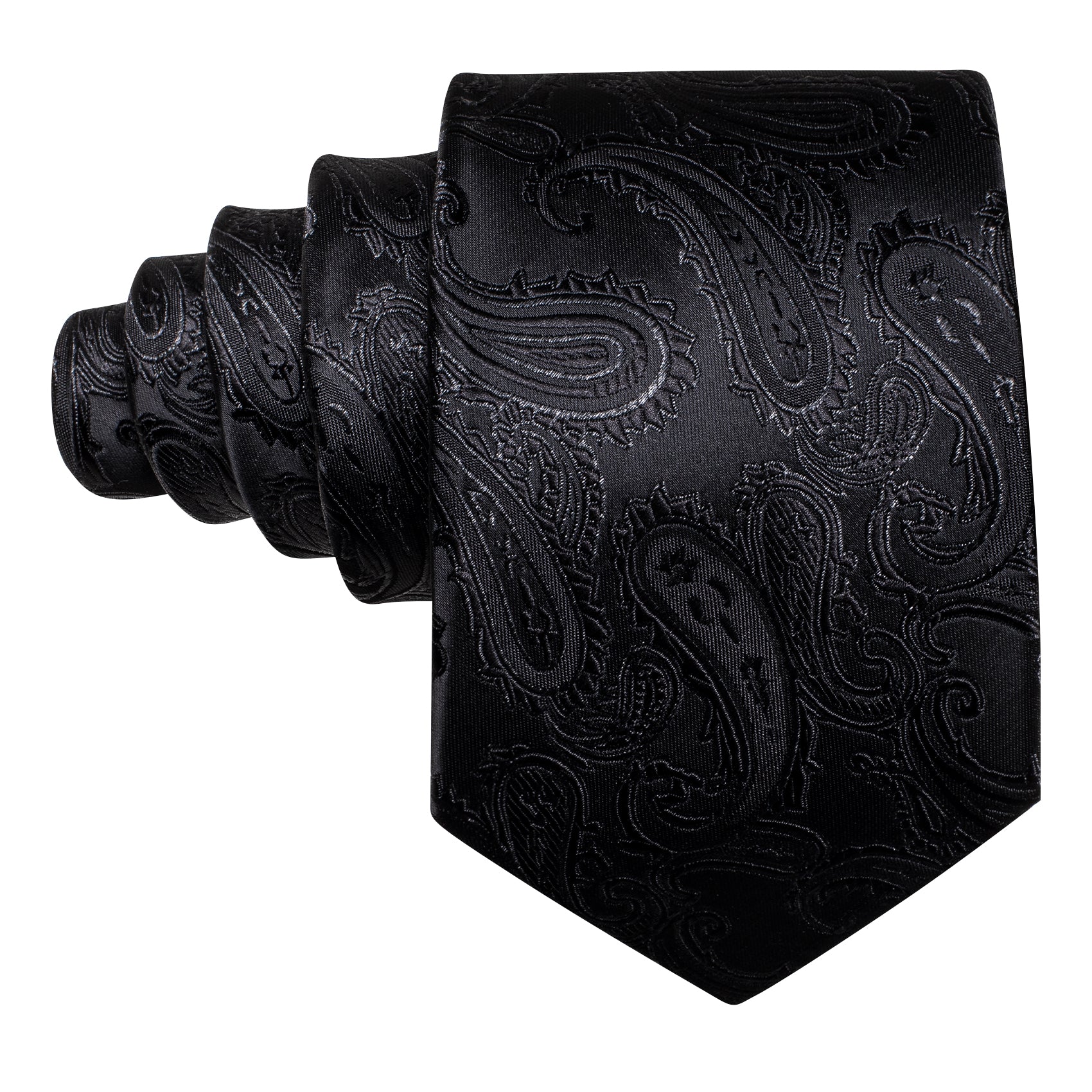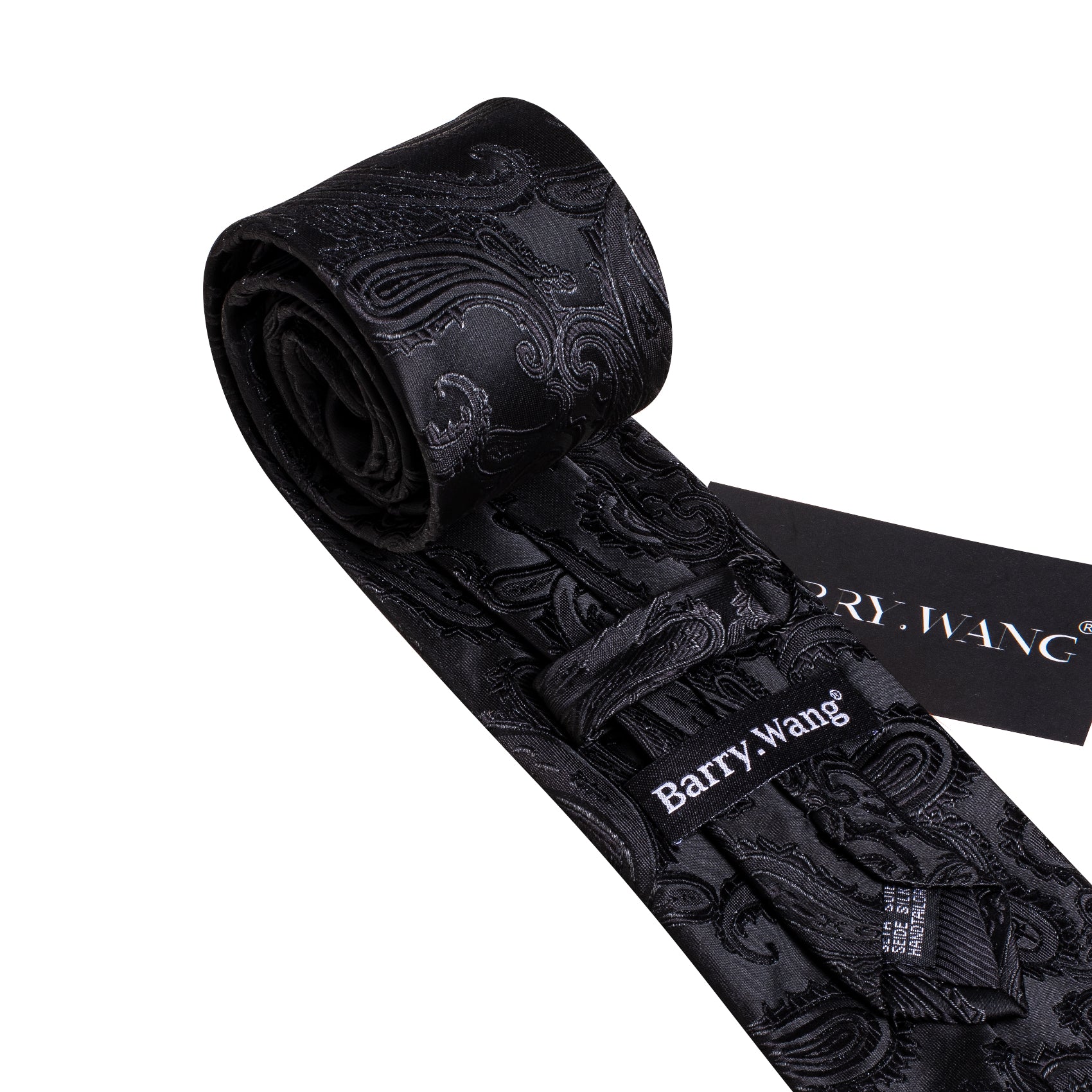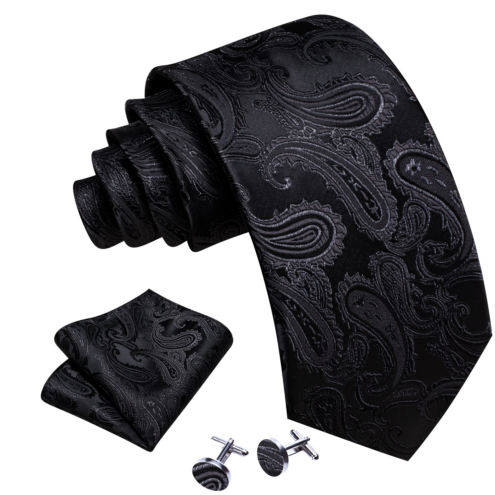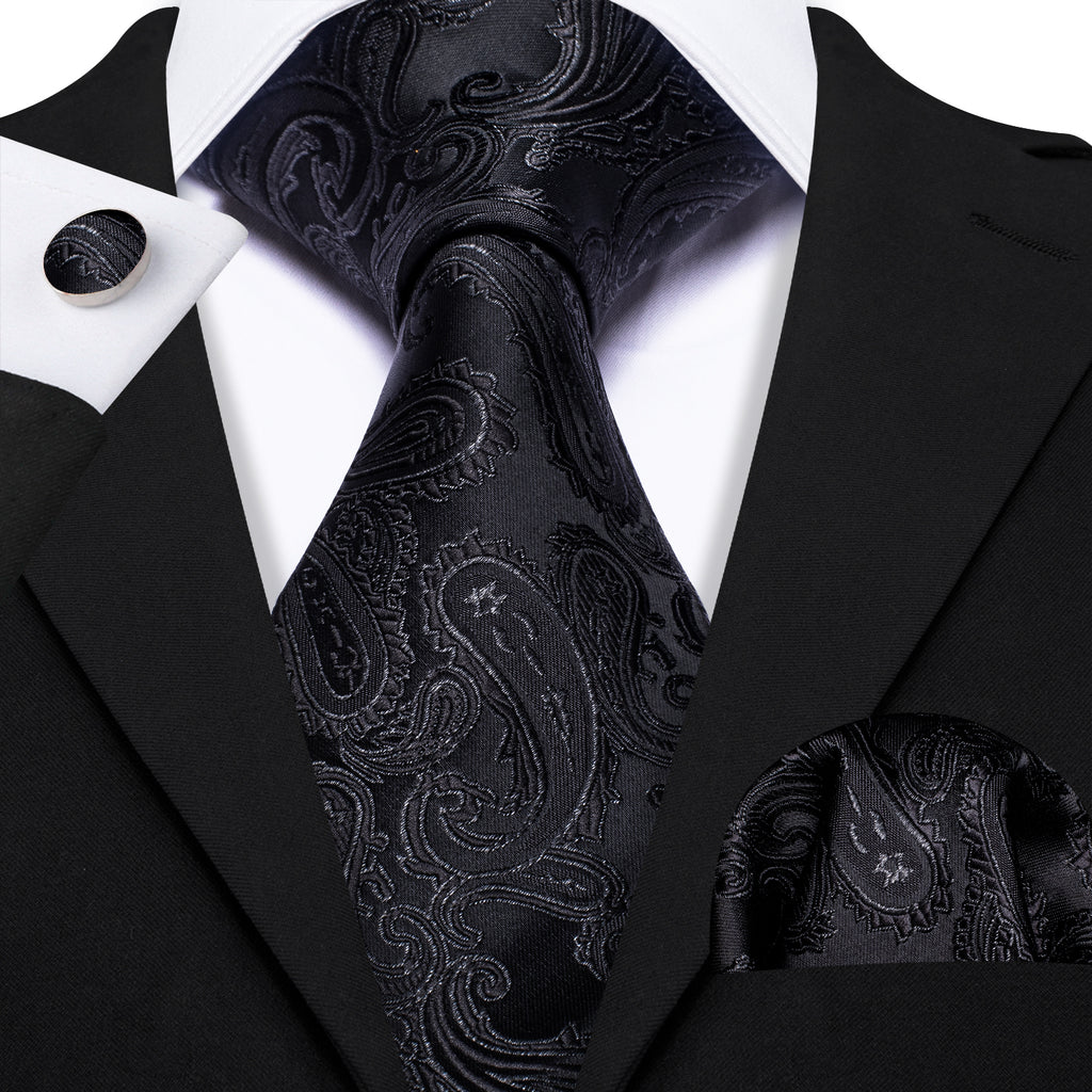 Barry. Wang Men's Necktie Black Paisley Silk Tie Hanky Cufflinks Set