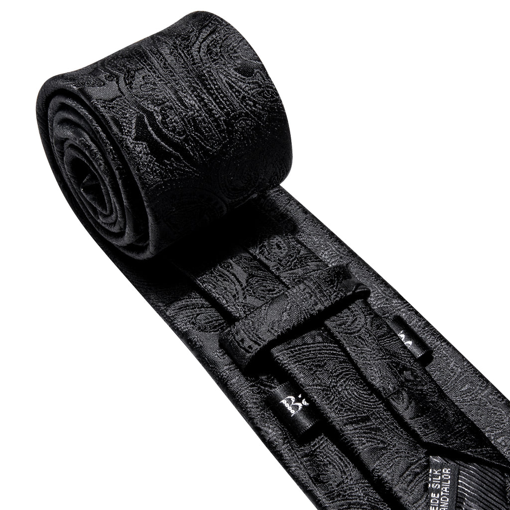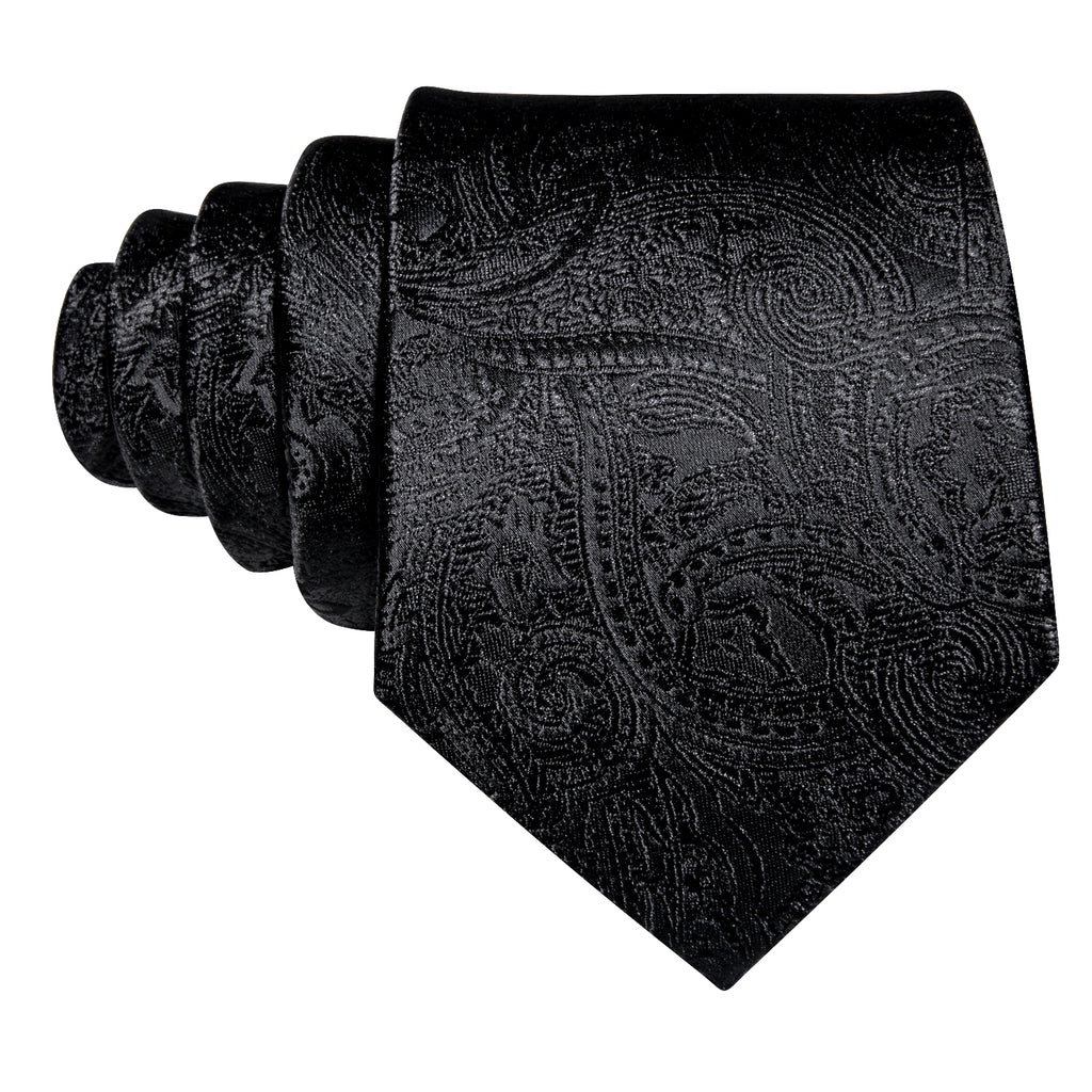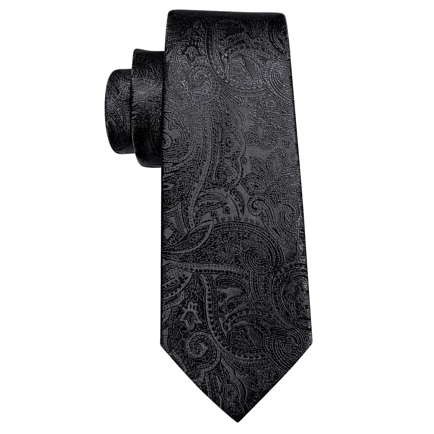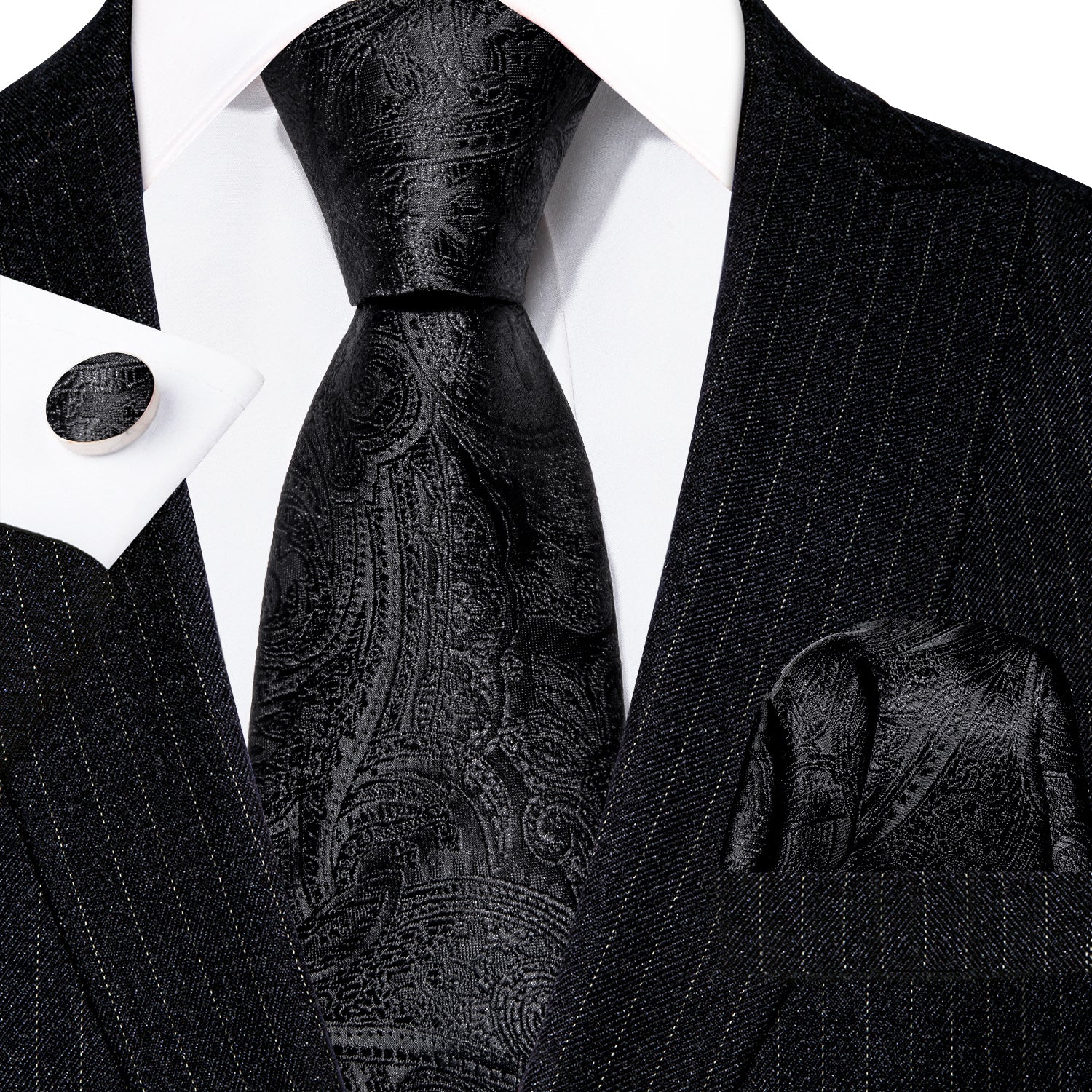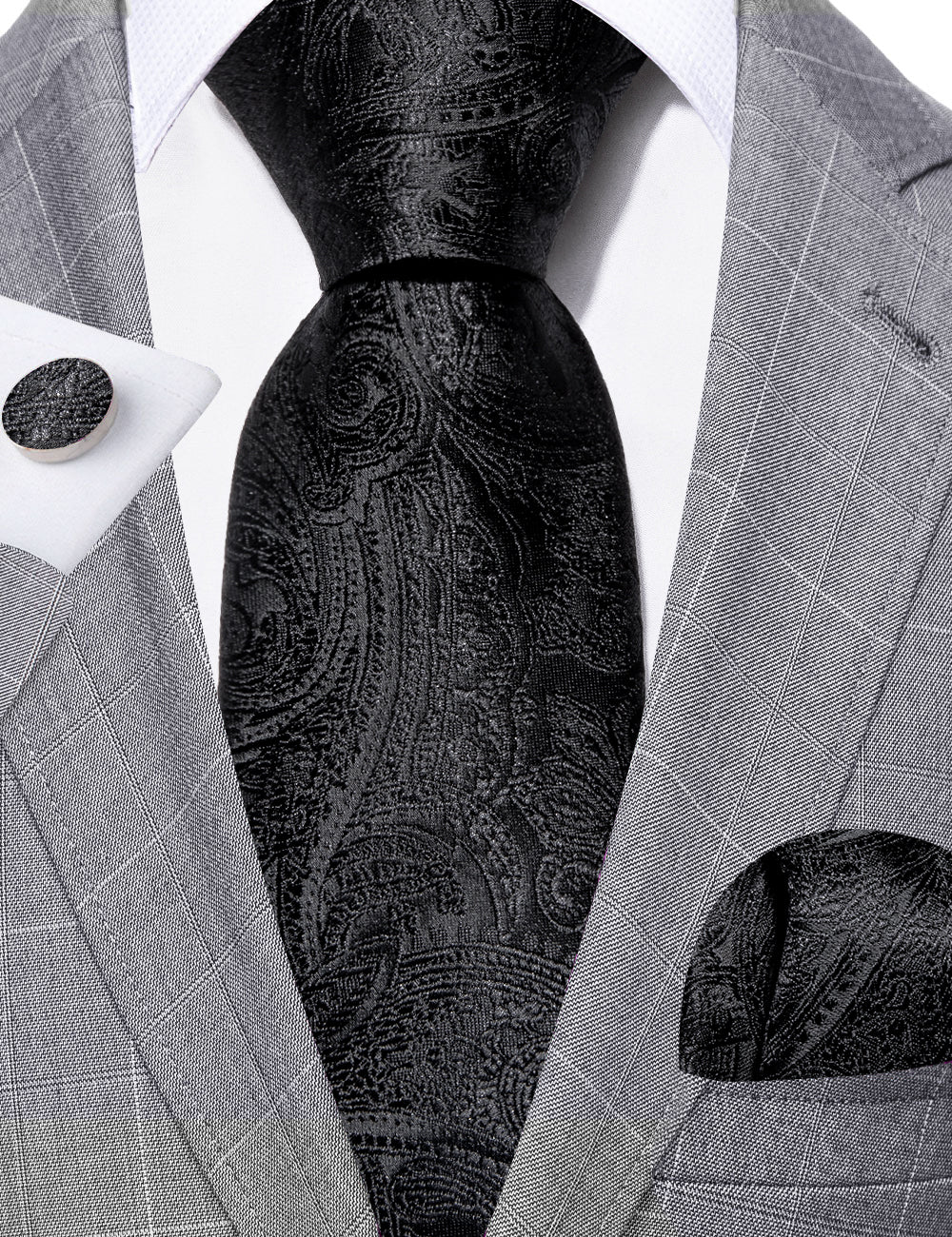 Barry. Wang Men's Black Paisley Tie Pocket Square Cufflinks Set