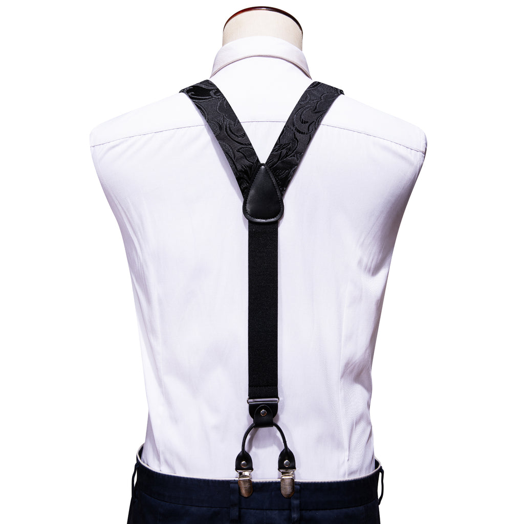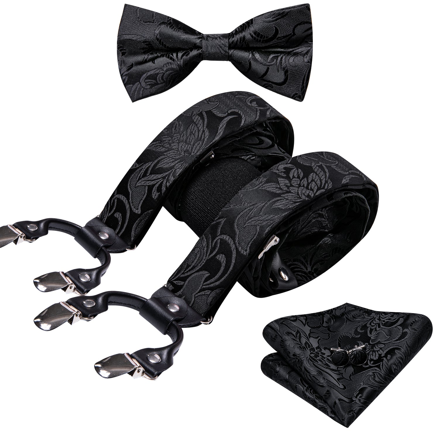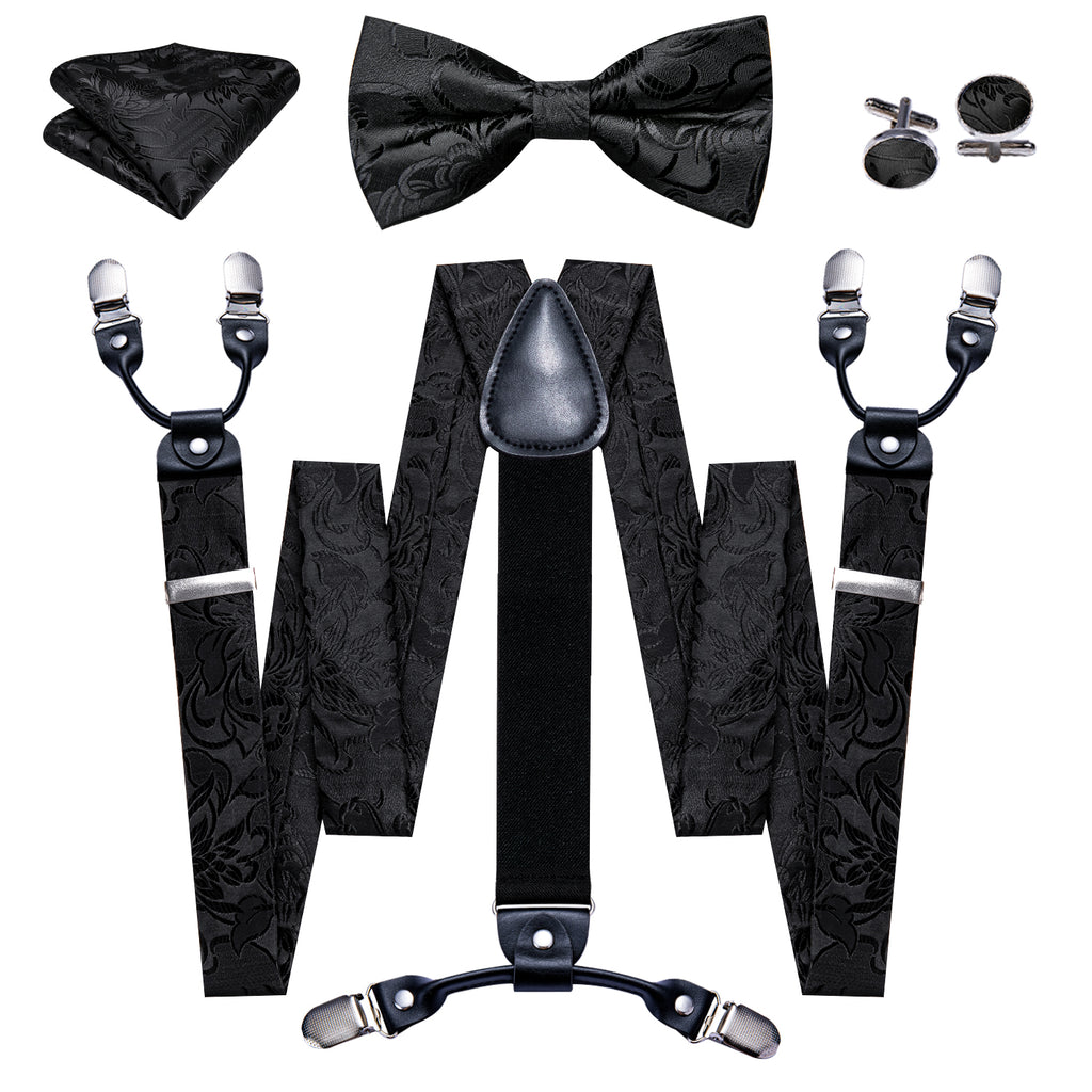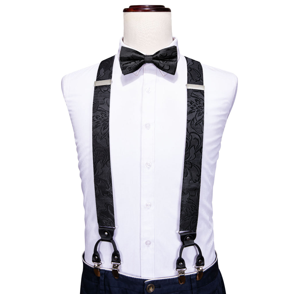 Barry. Wang Black Paisley Mens Y Back Adjustable Bow Tie Suspenders Set