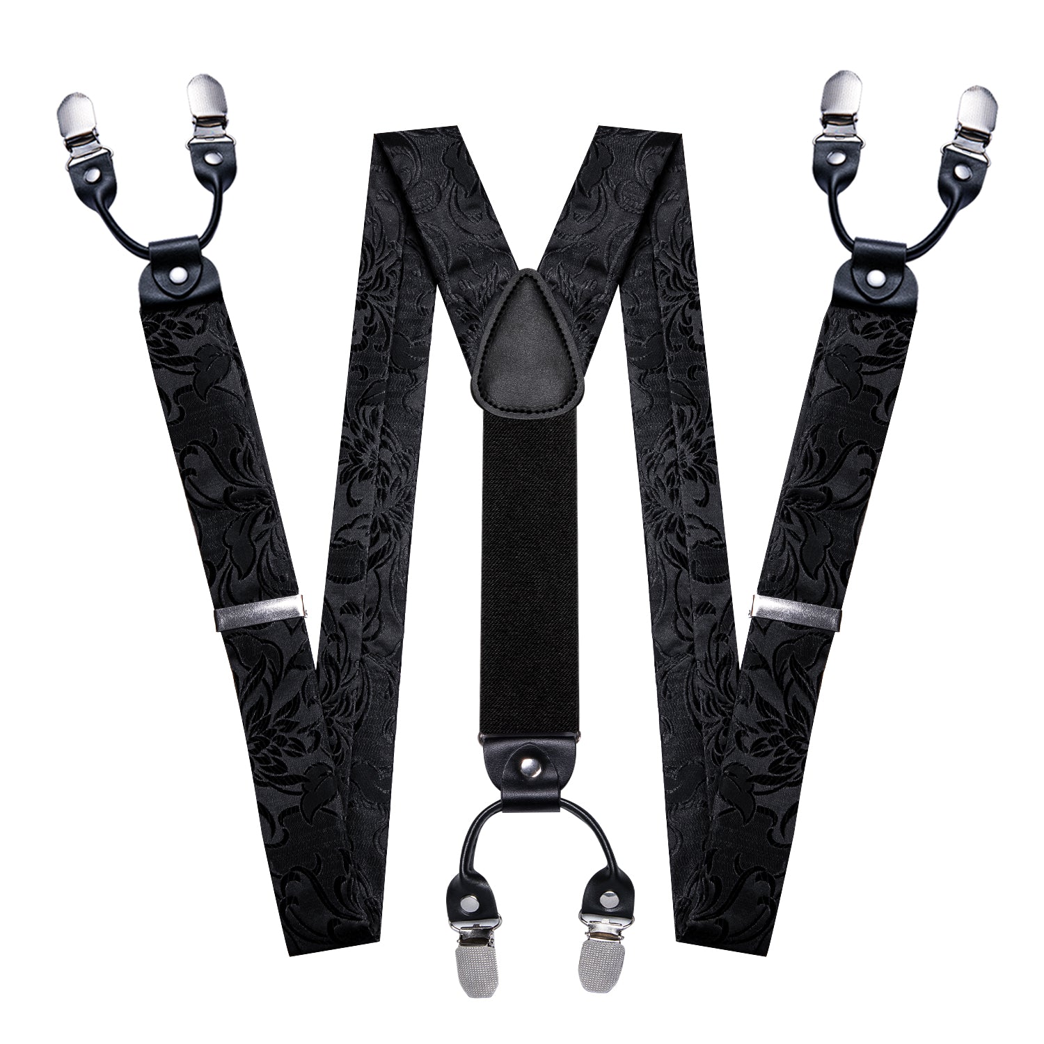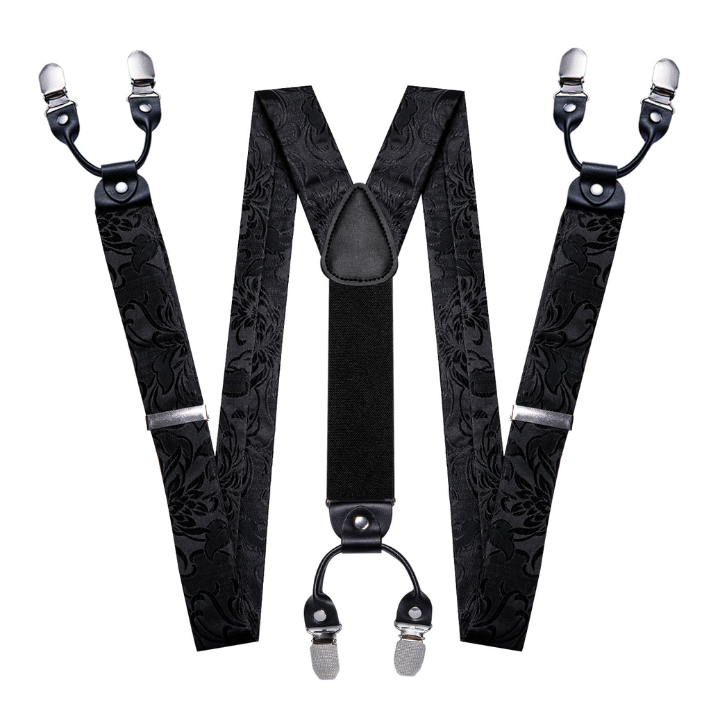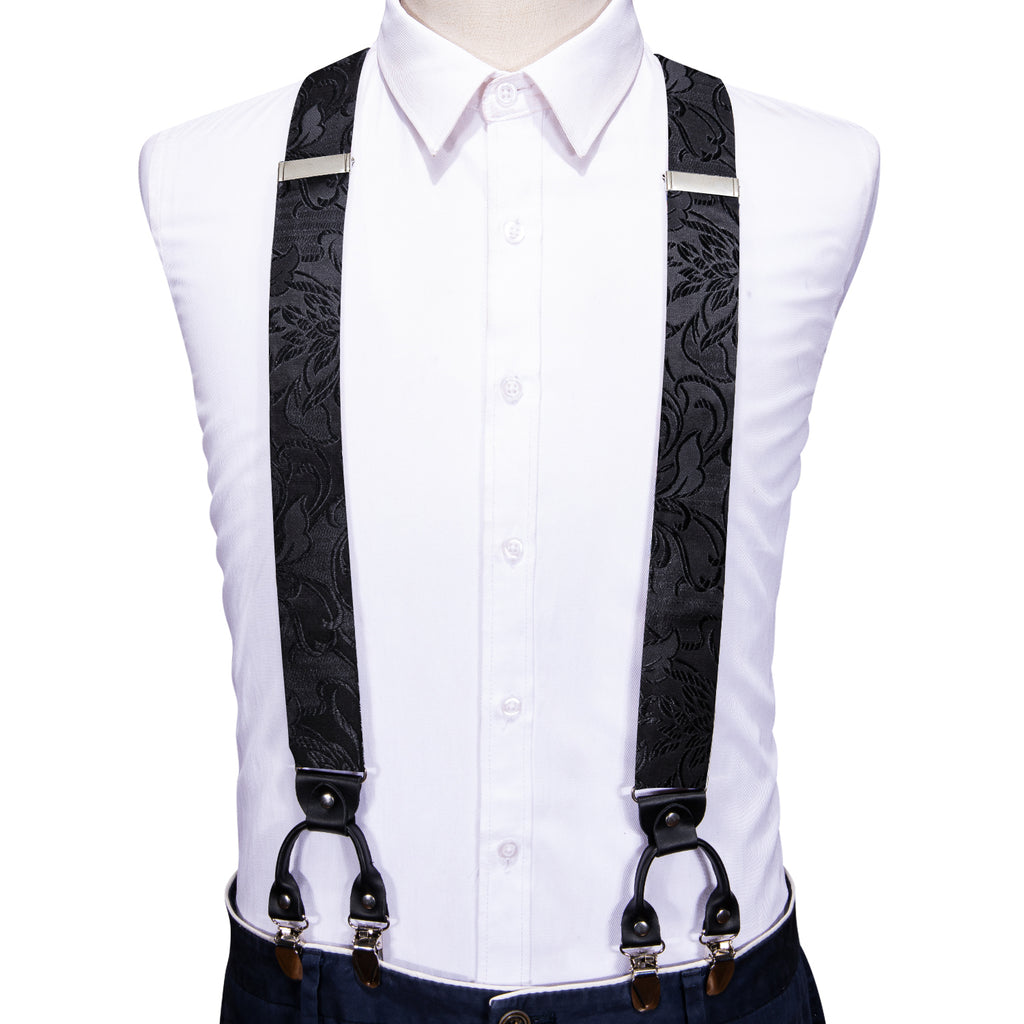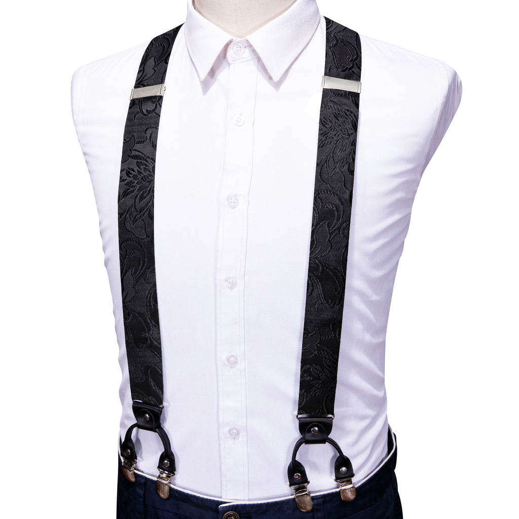 Barry. Wang Black Paisley Mens Y Back Adjustable Bow Tie Suspenders Set