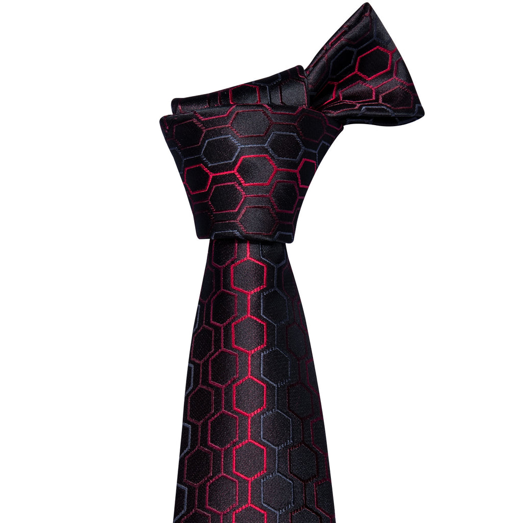 Barry. Wang Black Red Geometric Silk Tie Pocket Square Cufflinks Set