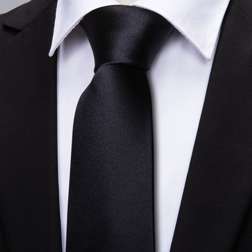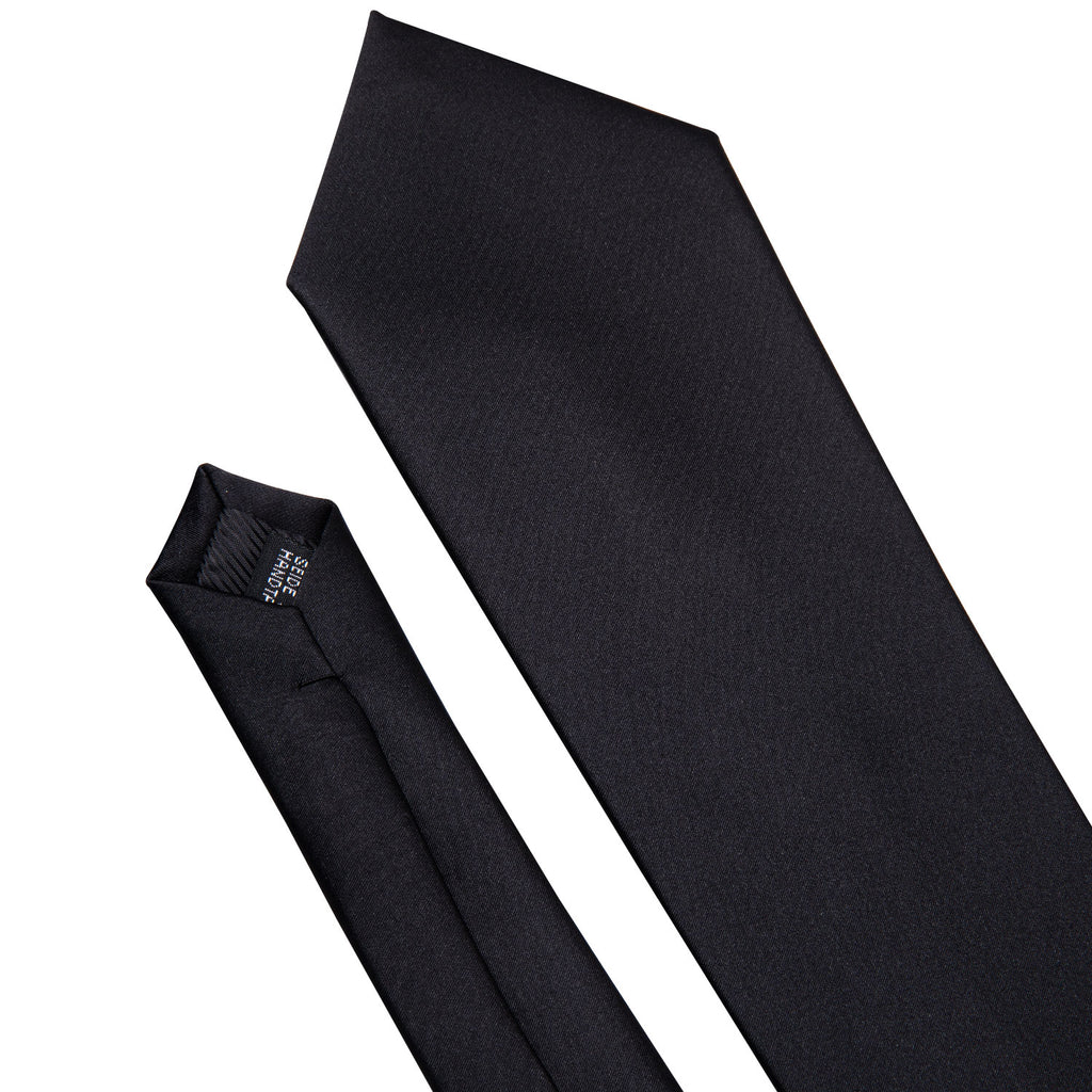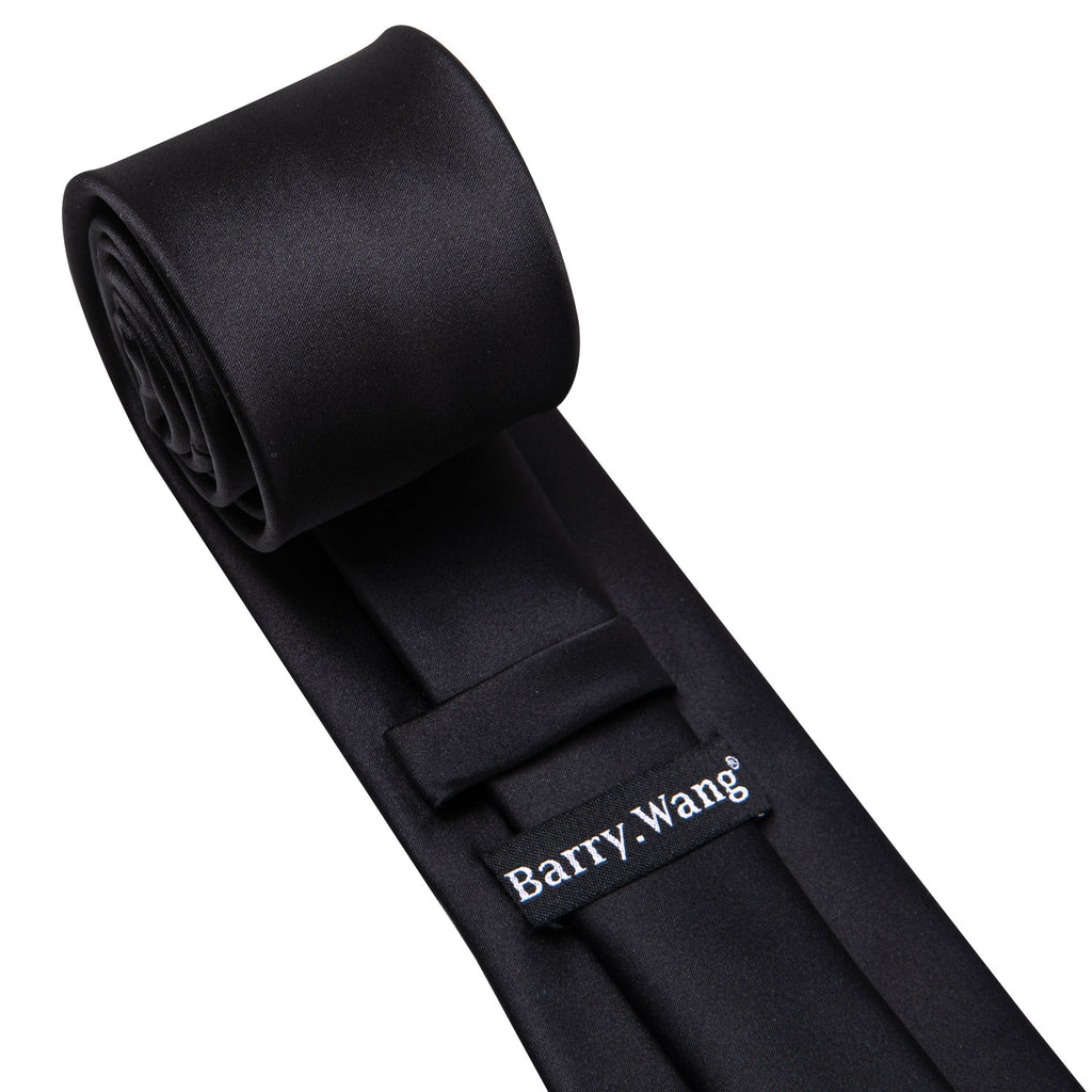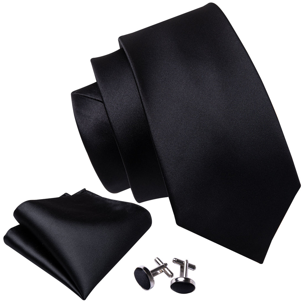 Barry. Wang Black Wedding Tie Men's Black Solid Tie Hanky Cufflinks Set