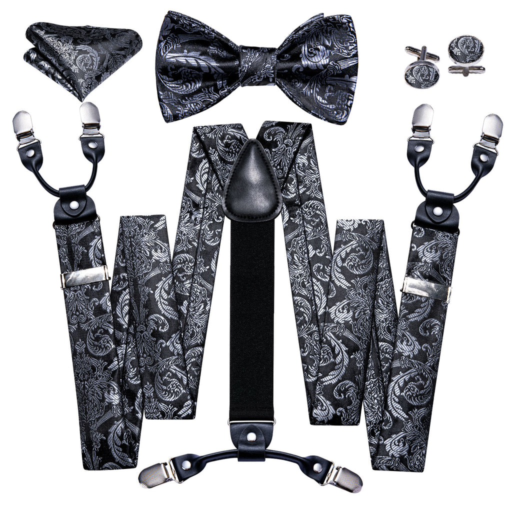 Barry. Wang Black White Paisley Y Back Adjustable Suspender Bow Tie Set
