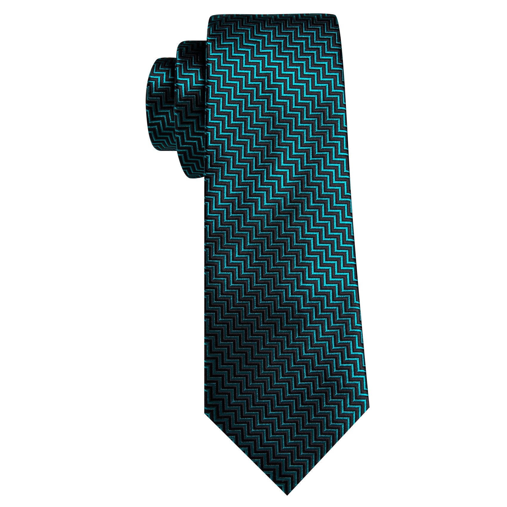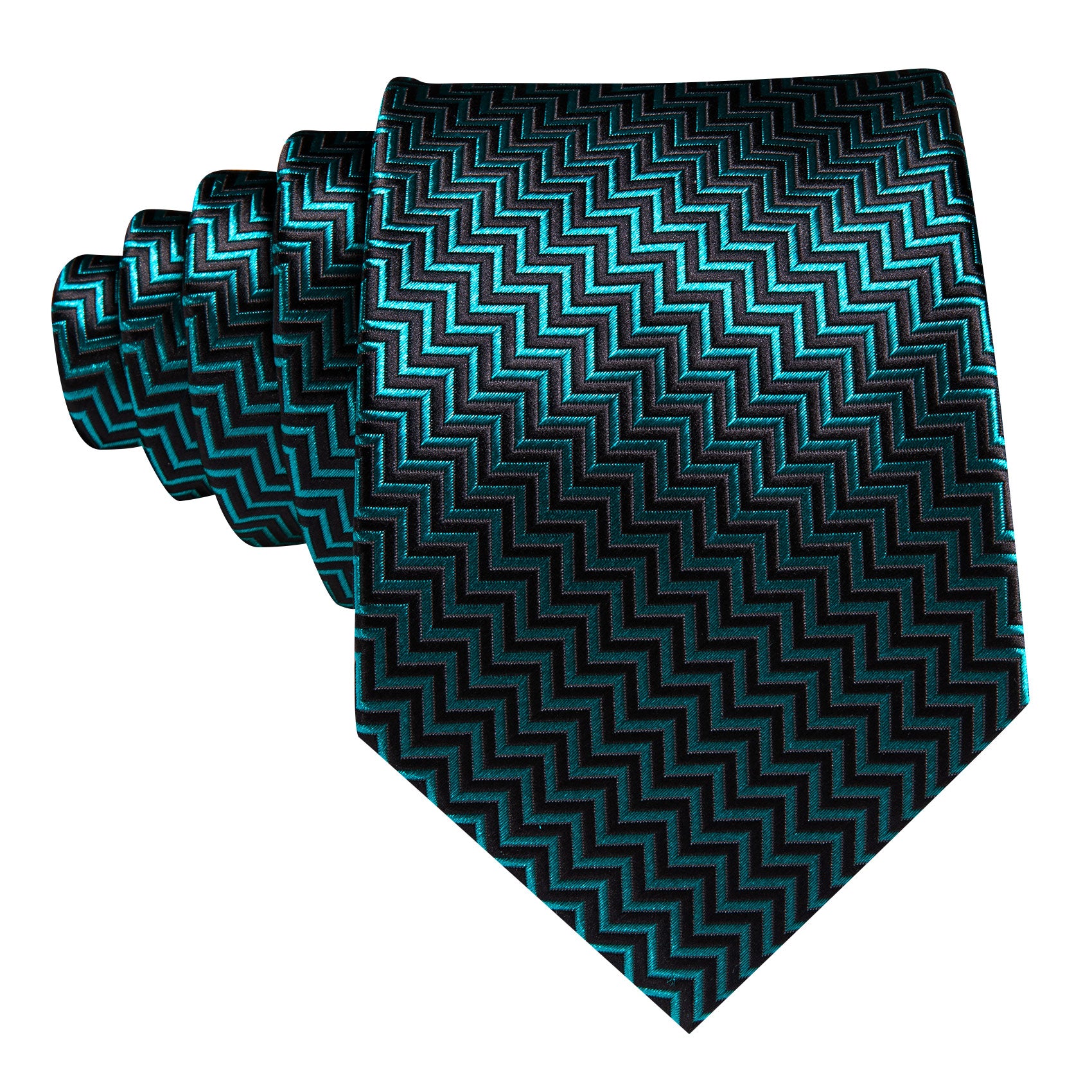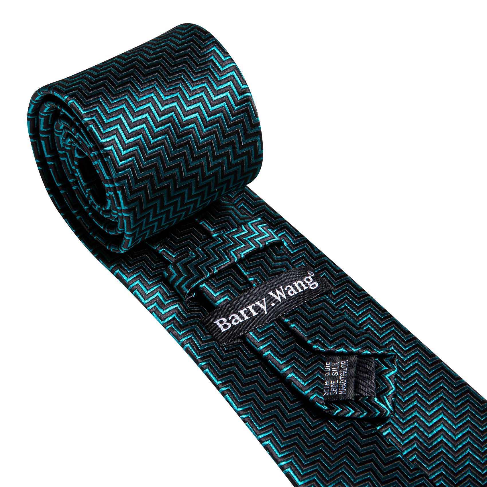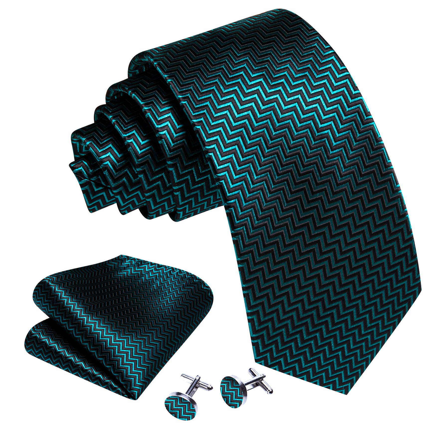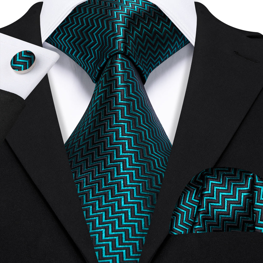 Barry. Wang Teal Blue Black Ripple Silk Tie Handkerchief Cufflinks Set