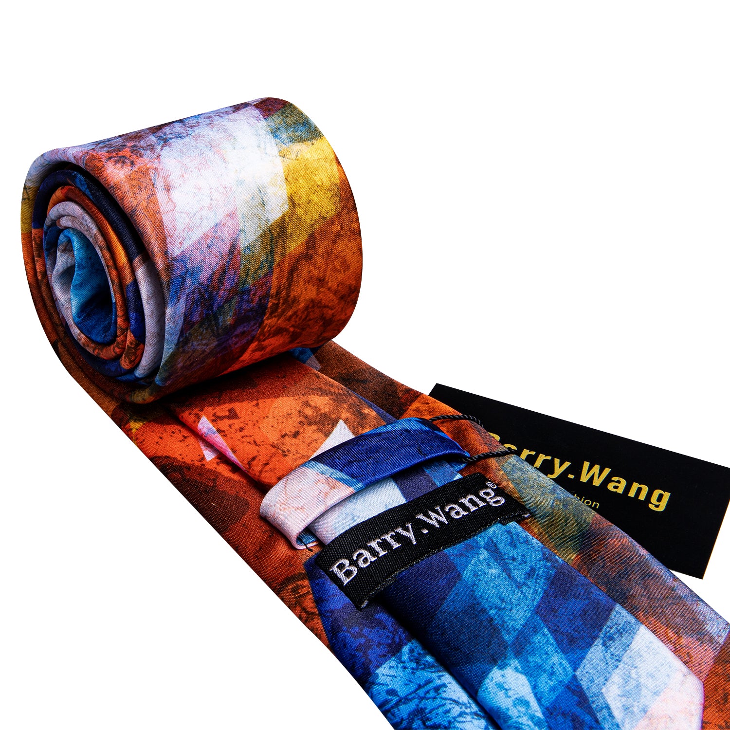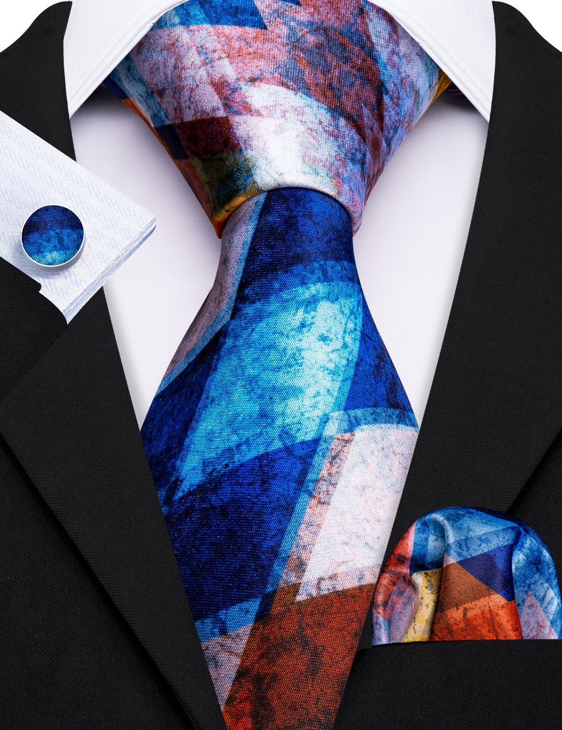 Barry. Wang Blue Brown Novelty Print Silk Men's Tie Hanky Cufflinks Set